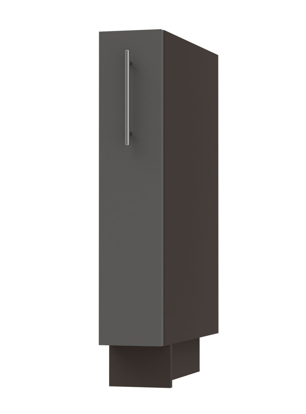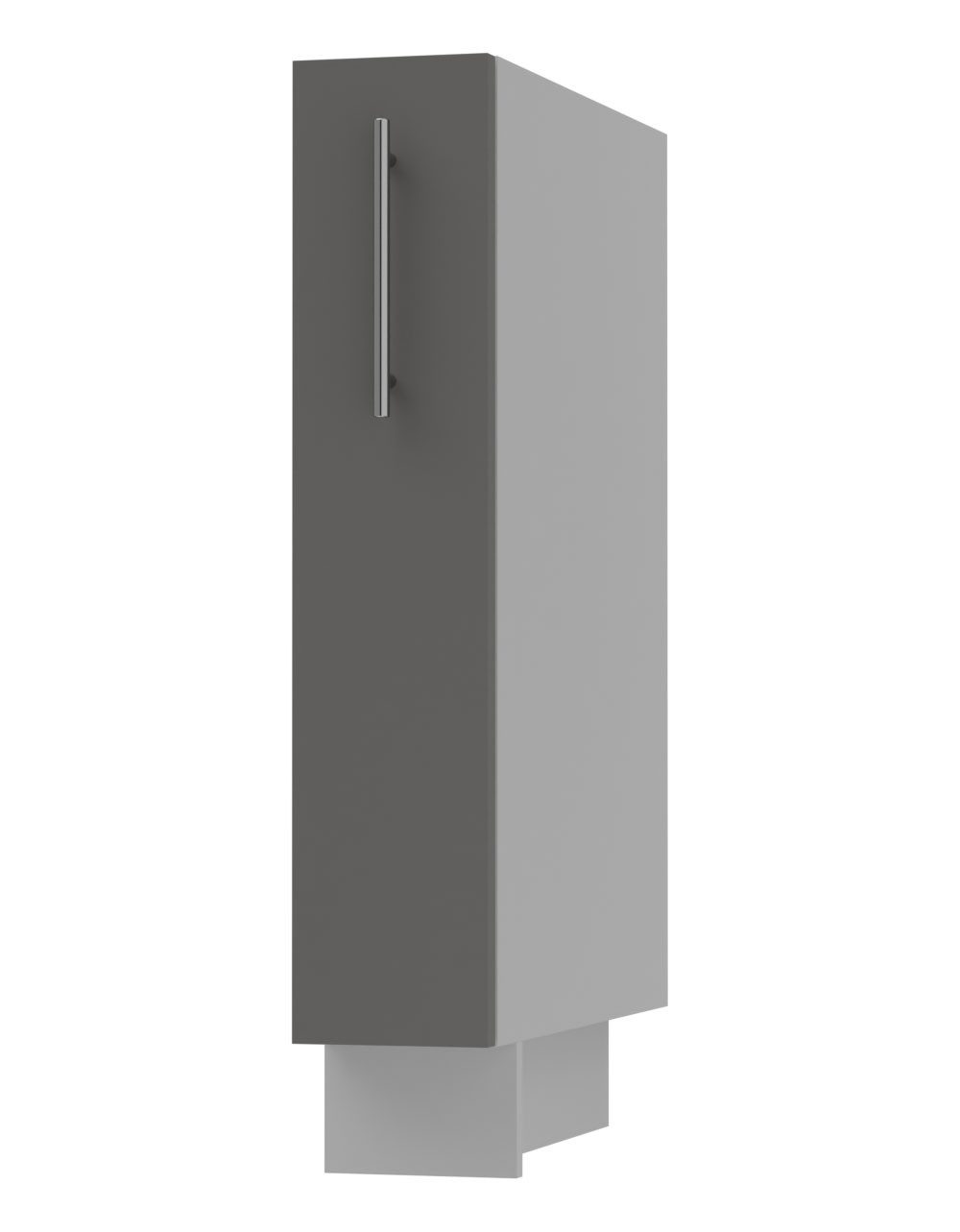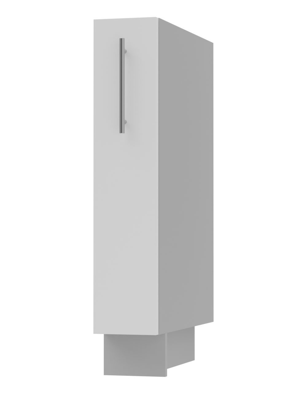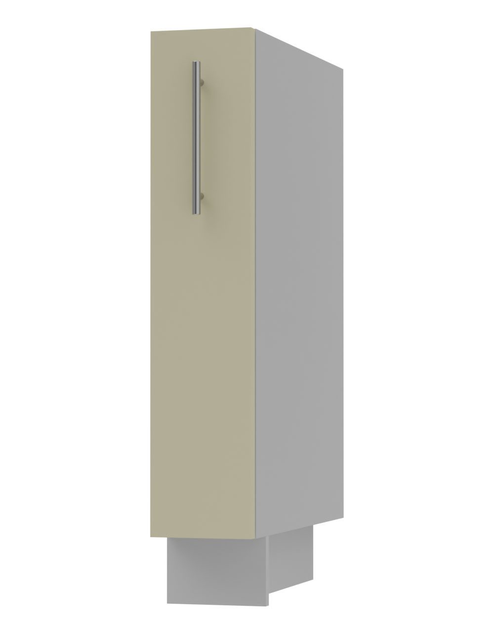 Der Schrank ist mit farbig passender Sockelleiste (Korpusfarbe) und regulierbaren Füßen ausgestattet.