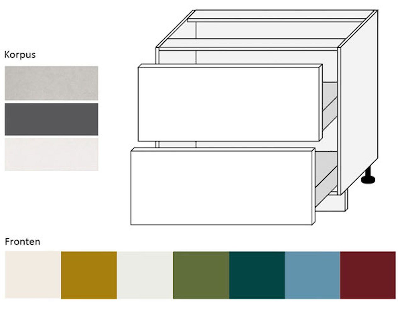 Schubladenunterschrank / Teilauszug / Soft-Close Funktion / Kassetten-Optik / Fronten Matt lackiert