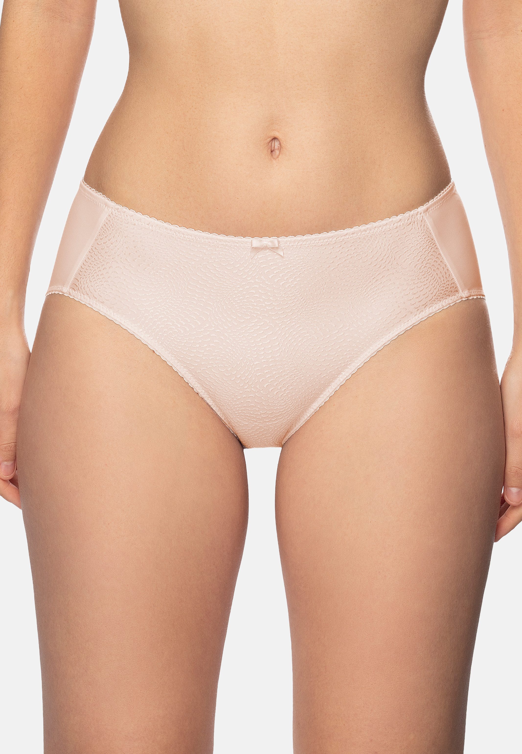 Minislip aus der Serie Serenada mit leicht glänzendem Jacquard-Stoff auf der Vorderseite. Die Rückseite ist aus elastischem, glattem Material gefertigt, das sich perfekt an den Körper anpasst.