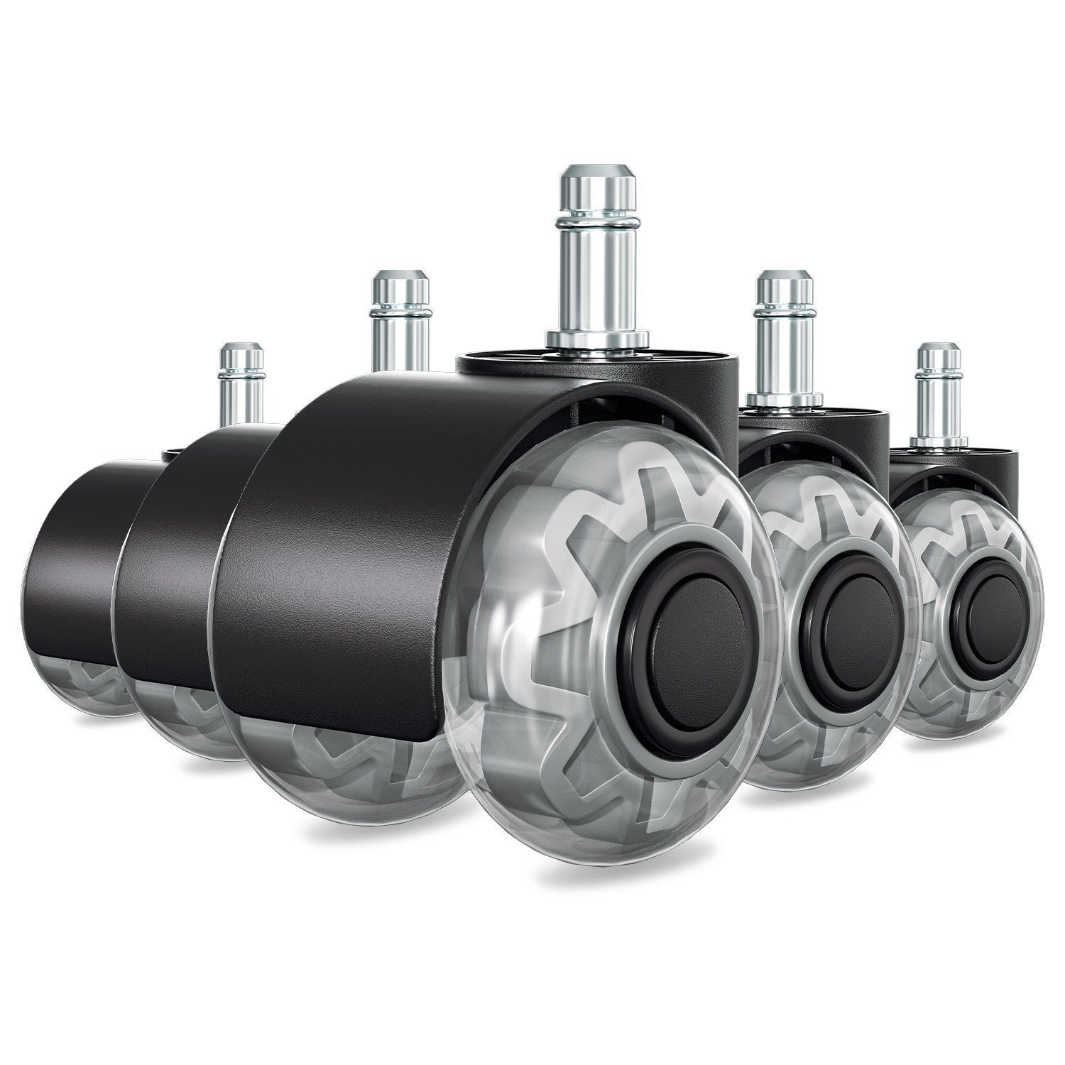 Bodenschonend: Ob Sie unsere Bürostuhlrollen auf Hartböden, Teppich, Fliesen oder Holz einsetzen, die verbesserten stoßdämpfenden Polyurethan-Gummiräder für Bürostühle schützen Ihre Böden vor Kratzern und Flecken und sparen Geld.