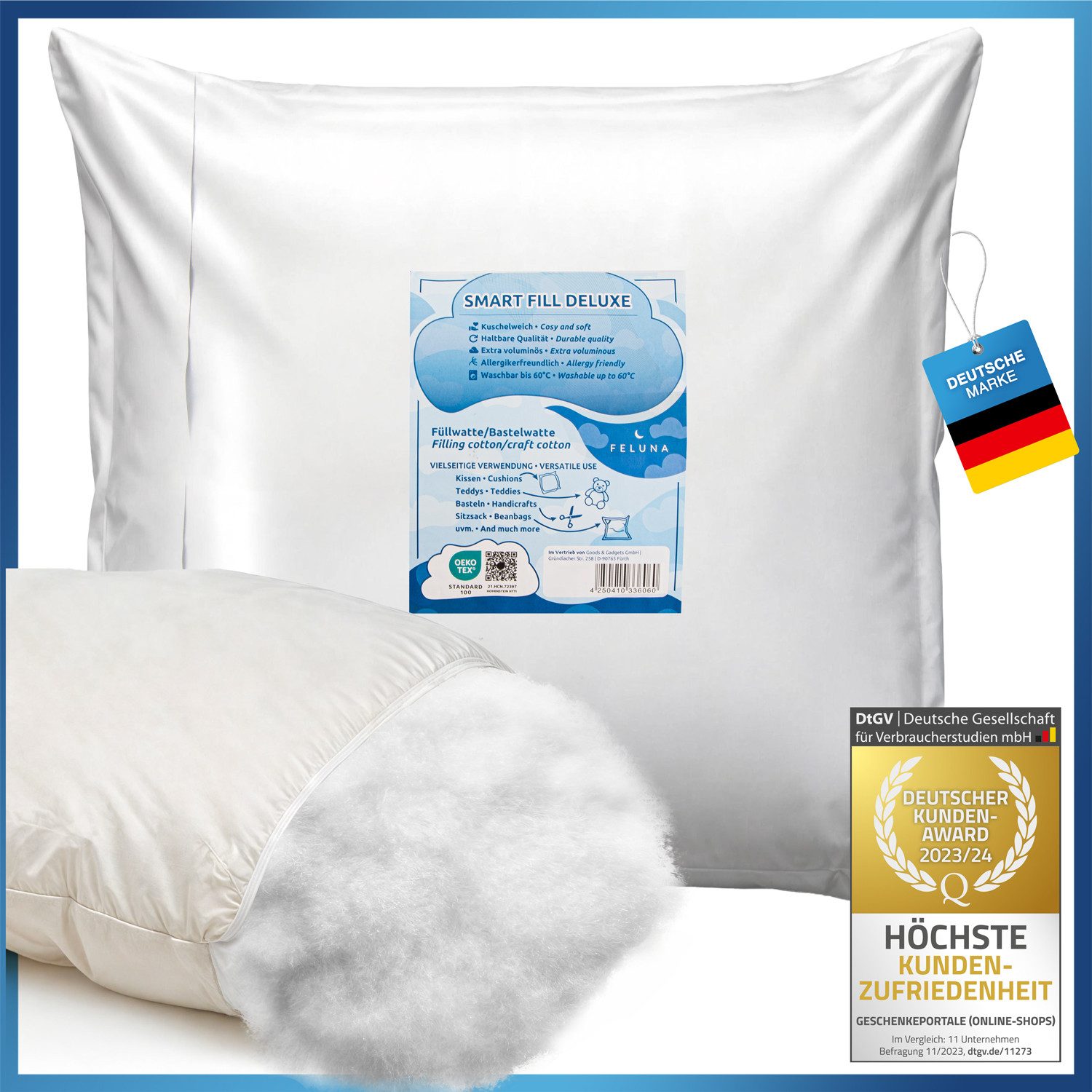 Verwandeln Sie Ihre DIY-Ideen in kuschelige Realität mit dem vielseitigen Füllmaterial von Feluna. Egal, ob Sie neue Kissen füllen, alte aufpolstern oder kreative Bastelarbeiten verwirklichen