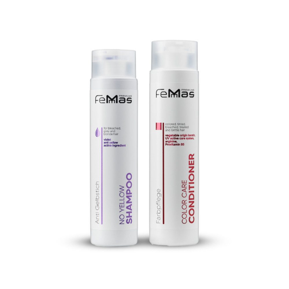 Erleben Sie professionelle Haarpflege mit dem Femmas Blond Care Set, speziell entwickelt für blondes und aufgehelltes Haar.