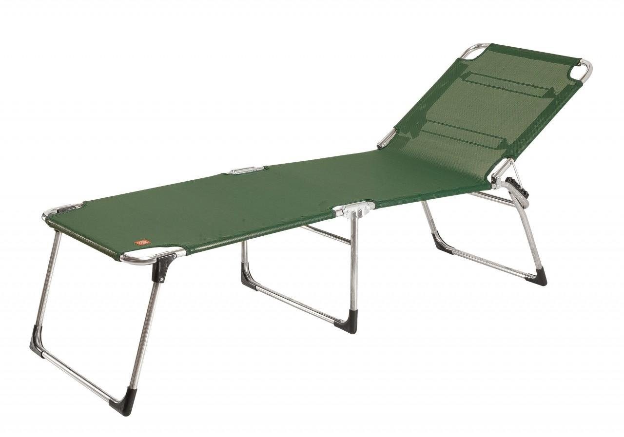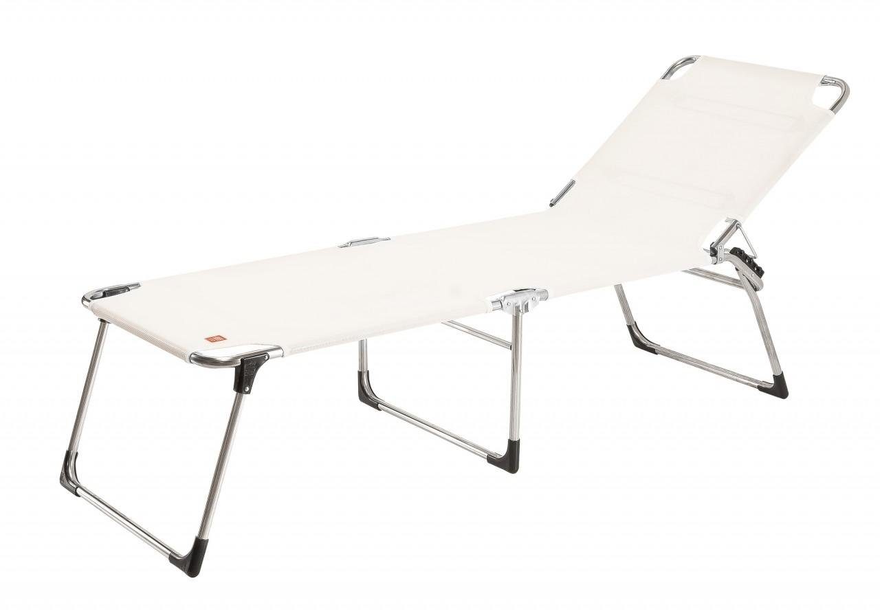 Der Bezug besteht aus strapazierfähigen, wetterfesten und UV-beständigen Textilene. Die Bespannung ist allerdings nicht nur pflegeleicht und robust, sondern passt sich zudem den Körperkonturen an und bietet einen hohen Komfort. Komfortabel sind außerdem die besondere Liegehöhe von 42cm und die 3-fach verstellbare Rückenlehne, die auch fast waagerecht gestellt werden kann.