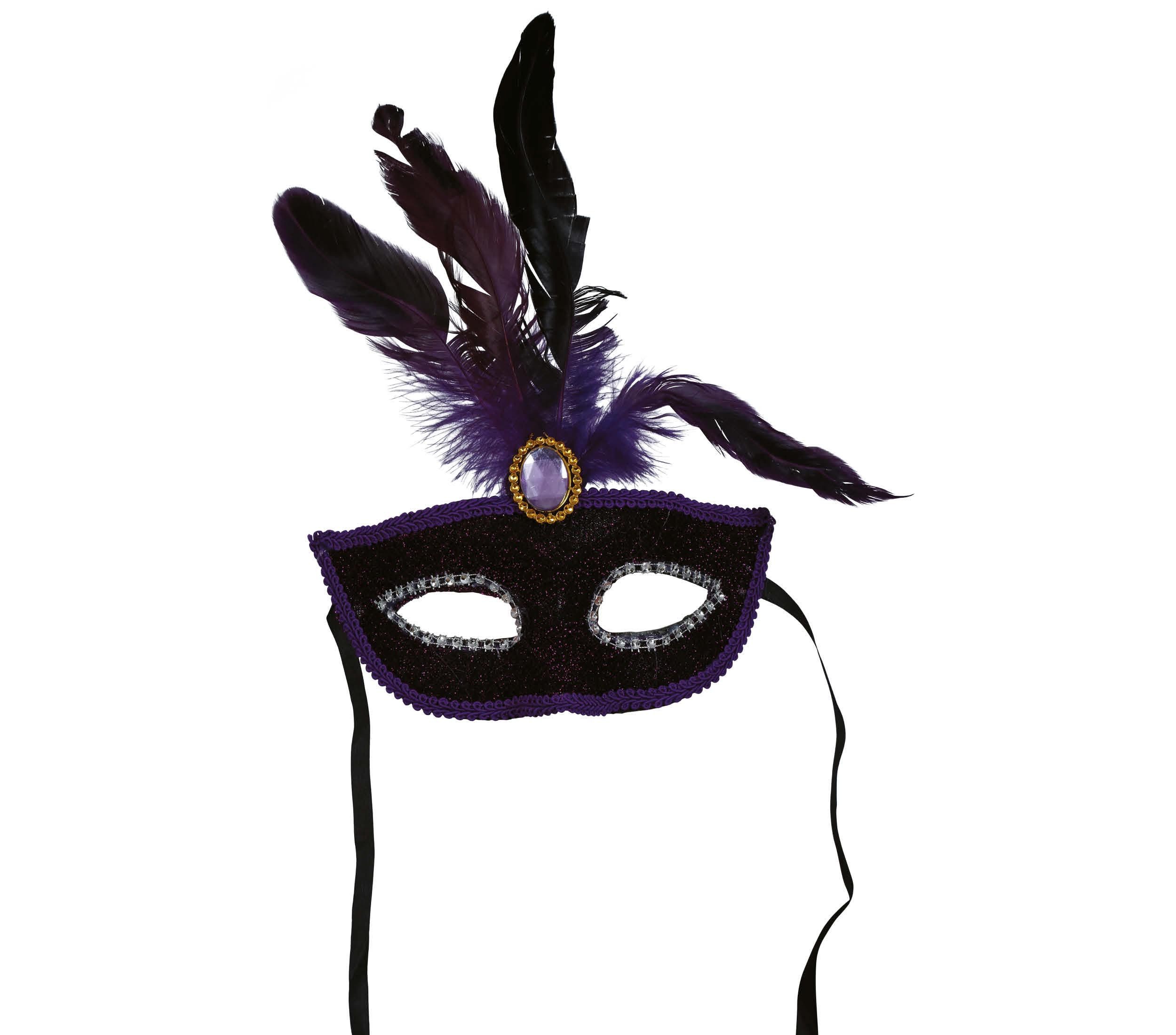 Diese exquisite Augenmaske bringt den Zauber des venezianischen Karnevals zu Ihnen. Umhüllt von einem geheimnisvollen Lila und kunstvollen Federn, verwandeln Sie sich in eine Maskenfigur der noblen Bälle. Der funkelnde Juwel in der Mitte verleiht Ihrer Erscheinung einen Hauch von königlicher Eleganz. Tauchen Sie ein in eine Welt voller Mystik und Eleganz, wo das Spiel der Masken die Fantasie beflügelt. Perfekt für feierliche Anlässe und unvergessliche Abende voller Charme.