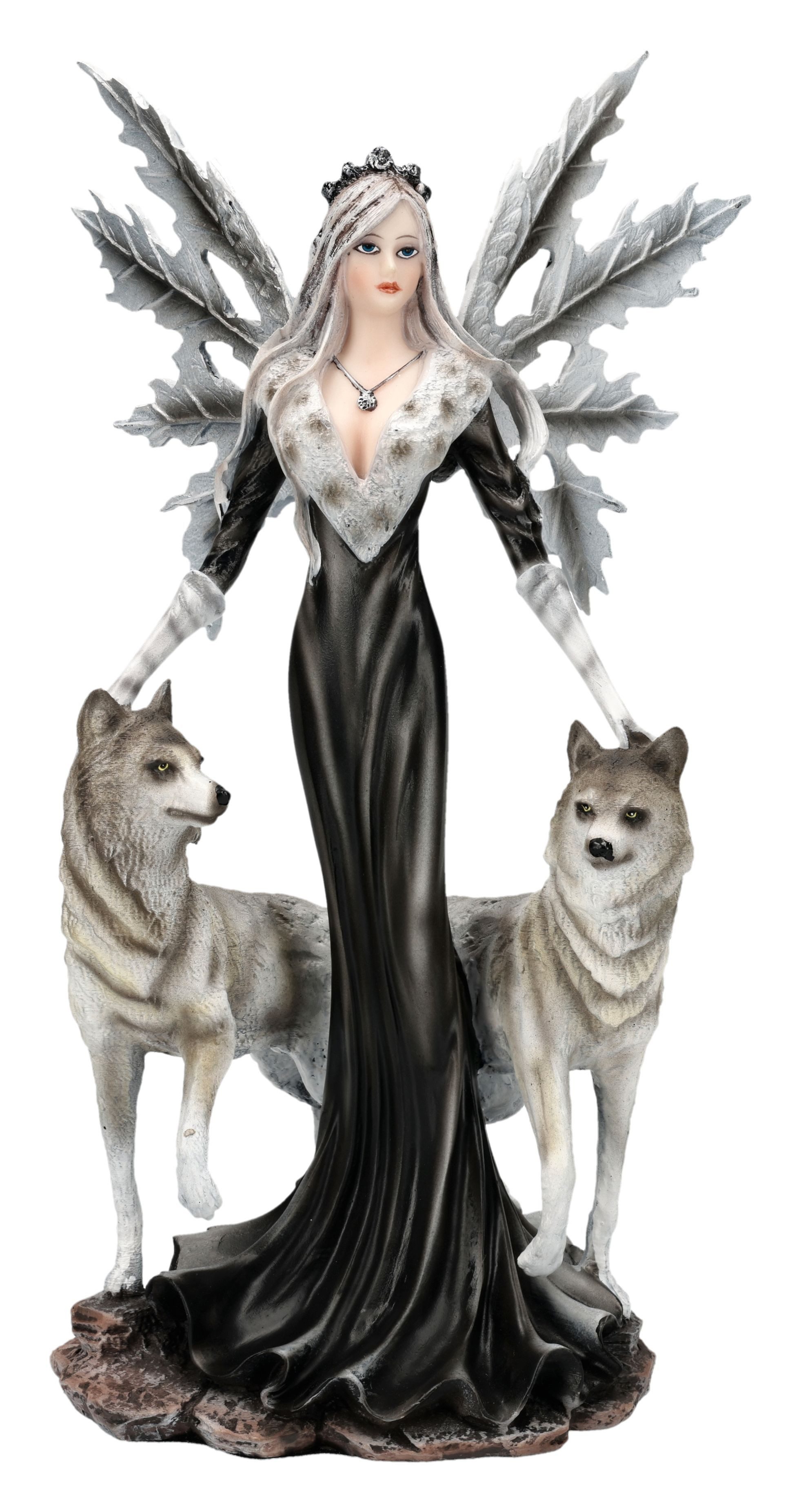 Die Elfe trägt ein elegantes schwarzes Kleid mit Wolfskragen, funkelnden Schmuck und eine Krone, die auf ihren langen, eisig weiß-grauen Haaren ruht. Ihre besonderen Flügel, die wie zu Eis erstarrte Blätter aussehen, sind zum Stecken und verleihen der Figur eine außergewöhnliche Tiefe. Jedes Detail ist liebevoll handbemalt, sodass jede Figur ein Unikat ist.