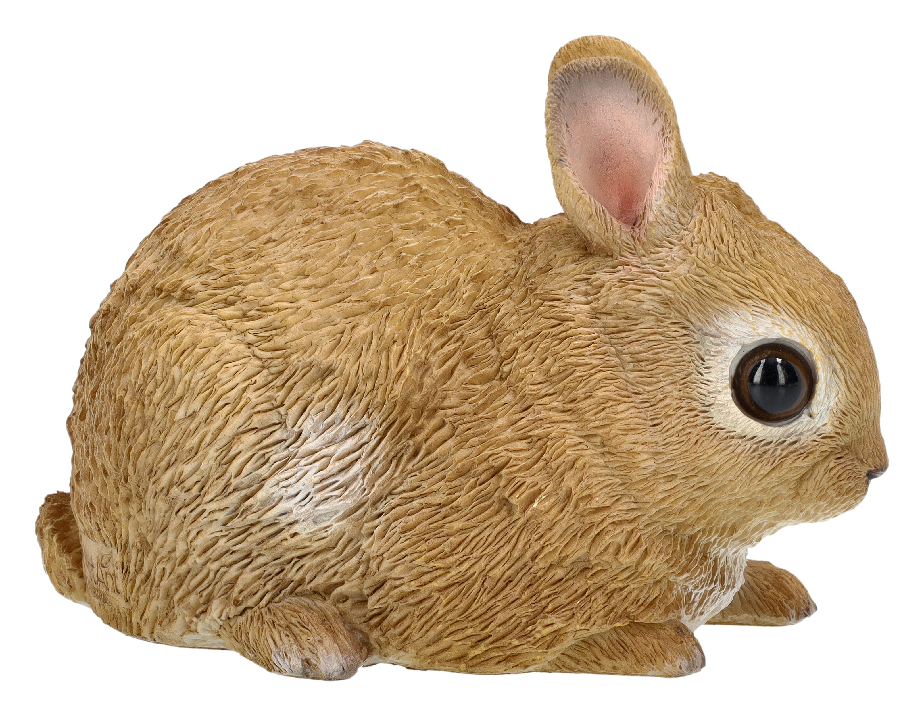 Diese niedliche Kaninchenfigur bringt einen Hauch von Natur in Ihren Garten. Mit ihren großen, erwartungsvollen Augen und der detailreichen Fellstruktur wirkt das Kaninchenbaby täuschend echt. Die Gartenfigur ist aus wetterfestem Kunststein (Polyresin) gefertigt und liebevoll von Hand bemalt.