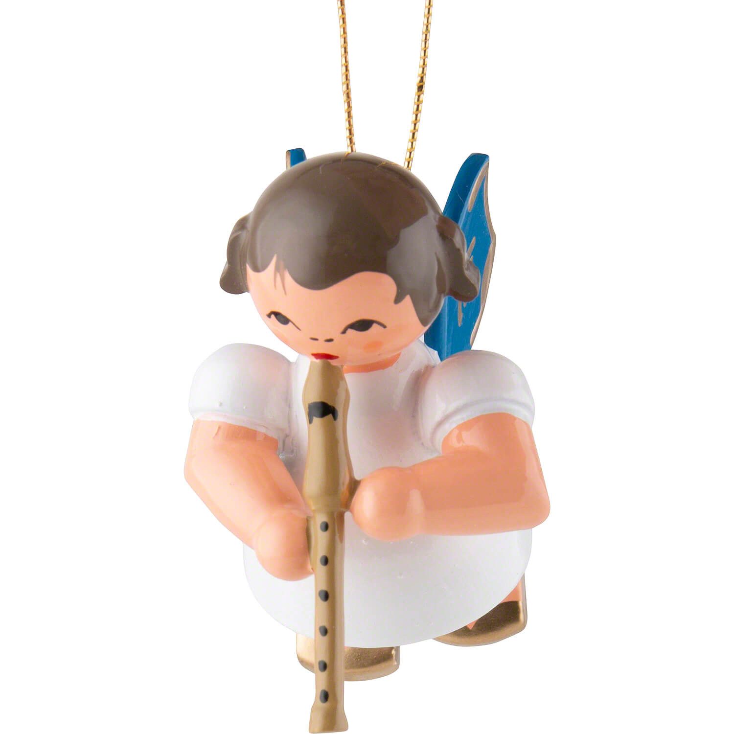 Figurenland Uhlig GmbH Dekohänger Christbaumschmuck Engel mit Blockflöte - Blaue Flügel - schwebend (5,5