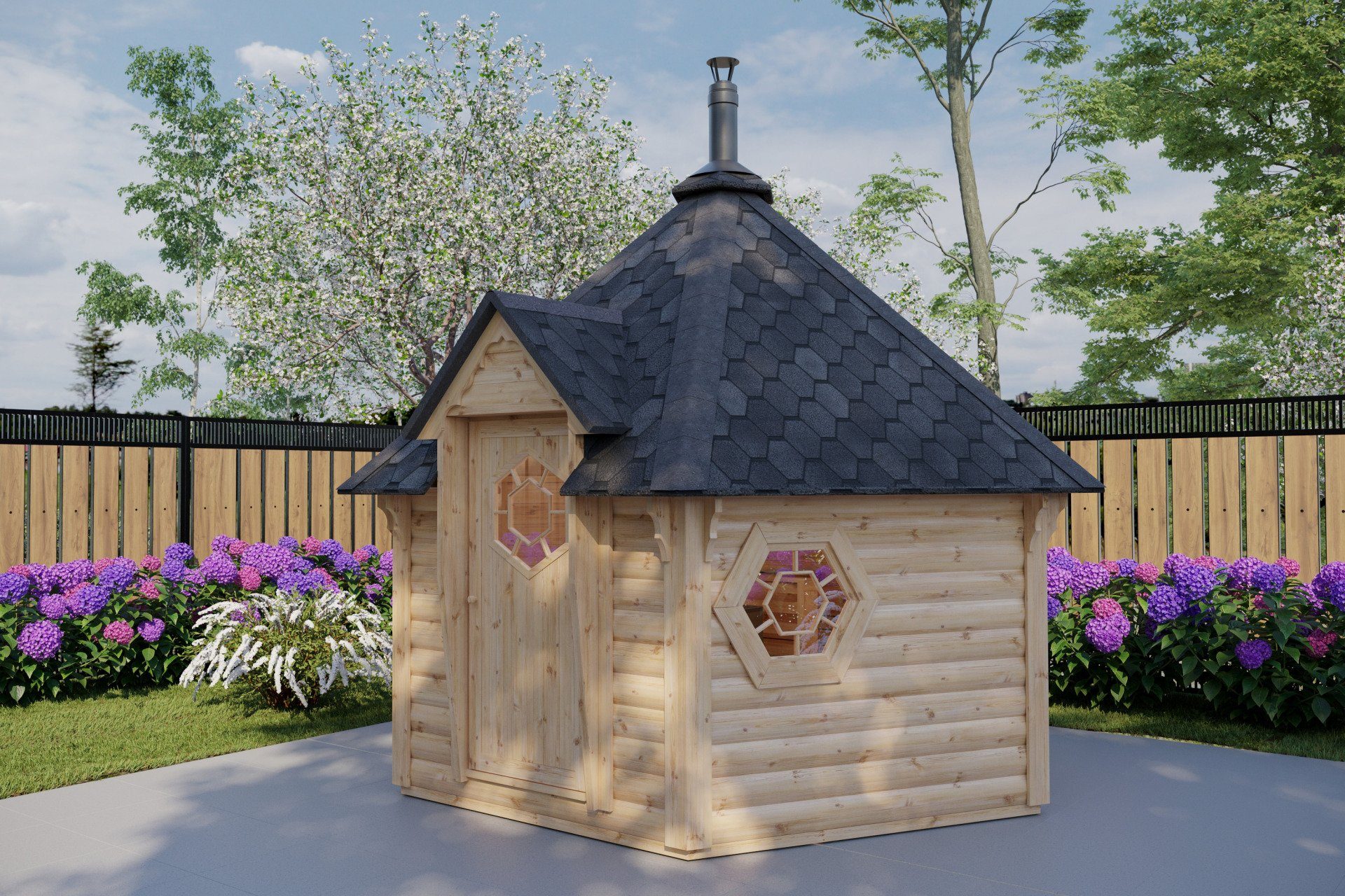 Mit der Saunakota Elegance saunieren Sie nach echtem finnischen Vorbild. Die Kota ist durchweg aus hochwertiger nordischer Kiefer und massiver Bauweise gefertigt – ein Garant für Stabilität und Langlebigkeit. Die Saunakota wird ihnen als Bausatz geliefert, in dem bereits die wichtigsten Elemente fest integriert sind. Sie brauchen also wirklich nur noch grobe Einzelteile zusammenfügen und haben binnen weniger Arbeitsstunden Ihre Saunakota als neuen Mittelpunkt in Ihrem Garten installiert.