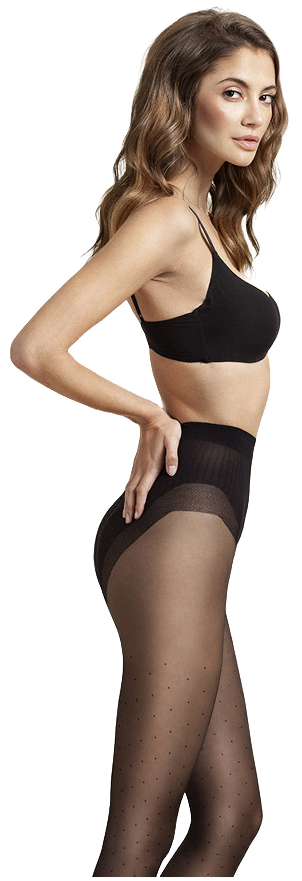 Pünktchen sind retro, aber immer trendig und angesagt. Die figurformenden Strumpfhosen bieten ausserdem eine gezielte Korrektur der Bauchlinie und schmeicheln der Silhouette, indem sie störende "Röllchen" um die Taille effektiv minimieren. Der enthaltene Koffeinextrakt verleiht nicht nur einen belebenden Effekt, sondern regt auch an und vermittelt müden Beinen ein Gefühl von Leichtigkeit.