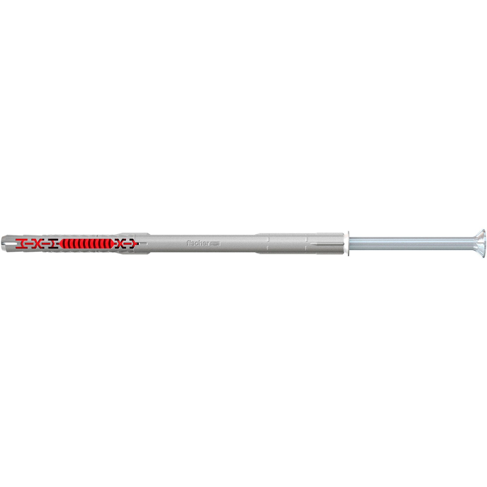 50 Stück Der fischer Langschaftdübel DuoXpand 10x160 T mit spezieller Lamellengeometrie verspreizt sich materialschonend im Baustoff und vermeidet so Brüche in porösen Baustoffen. Damit sind auch randnahe Verankerungen problemlos möglich. Der graue Grundkörper aus hochwertigem Nylon bietet starken Halt, während die flexible, rote Materialkomponente für optimales Aufspreizen sorgt. Der DuoXpand eignet sich für die Durchsteckmontage. In Vollbaustoffen bietet das abgestimmte Produktdesign eine gleichmäßige Lastverteilung in den Untergrund, und im Lochsteinmauerwerk spreizen die Lamellen am Steinsteg und bilden im Hohlraum einen Hinterschnitt aus. Die Варіанти mit galvanisch verzinkter Senkkopfschraube eignet sich besonders gut zur Befestigung von Holzkonstruktionen, Fassadenunterkonstruktionen, Carports, Holz-Vordächer, TV-Halterungen oder Fensterrahmen. Die bereits vormontierte Sicherheitsschraube ist perfekt auf den Langschaftdübel DuoXpand 10x160 T abgestimmt und spart Zeit bei der Montage.