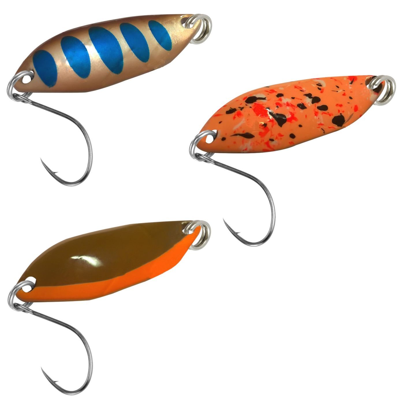 3 FTM Spoon Hit Blinker 3,3g - Die FTM Spoon Hit sind fängige Kunstköder zum Angeln auf Raubfische wie Forelle & Barsch. Die FTM Spoon Hit Blinker sind sehr gut zum Spinnfischen im Forellenbach, Forellenteich & See geeignet. Der FTM Spoon Hit Blinker ist mit einem scharfen Einzelhaken ausgestattet, so dass der Fisch beim Anbiss sehr gut gehakt werden kann. Die Forellenköder FTM Spoon Hit können sehr gut mit einer leichten Spinnrute geworfen werden.