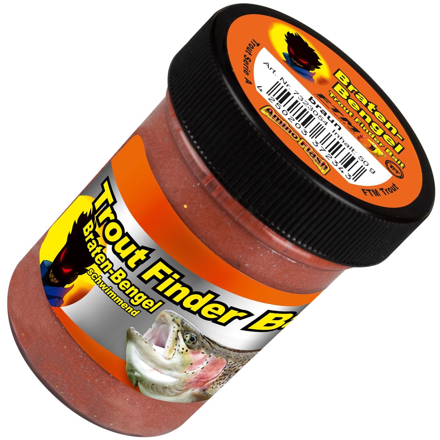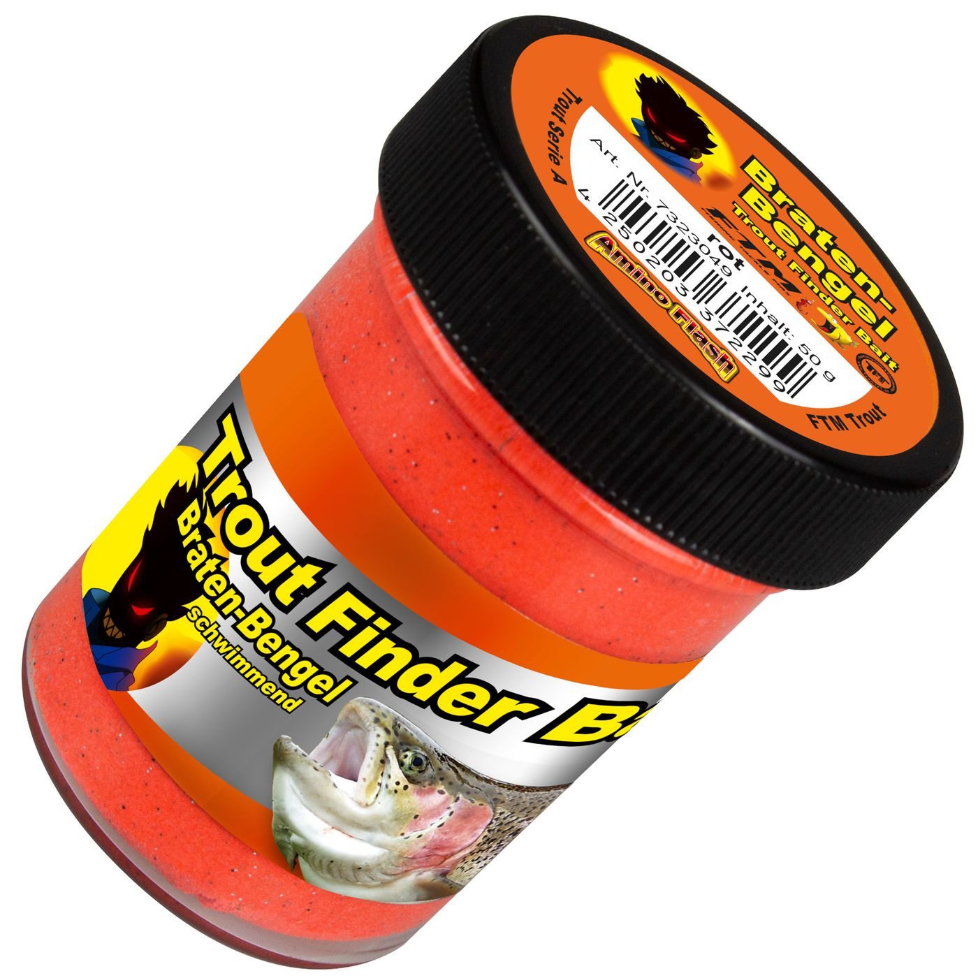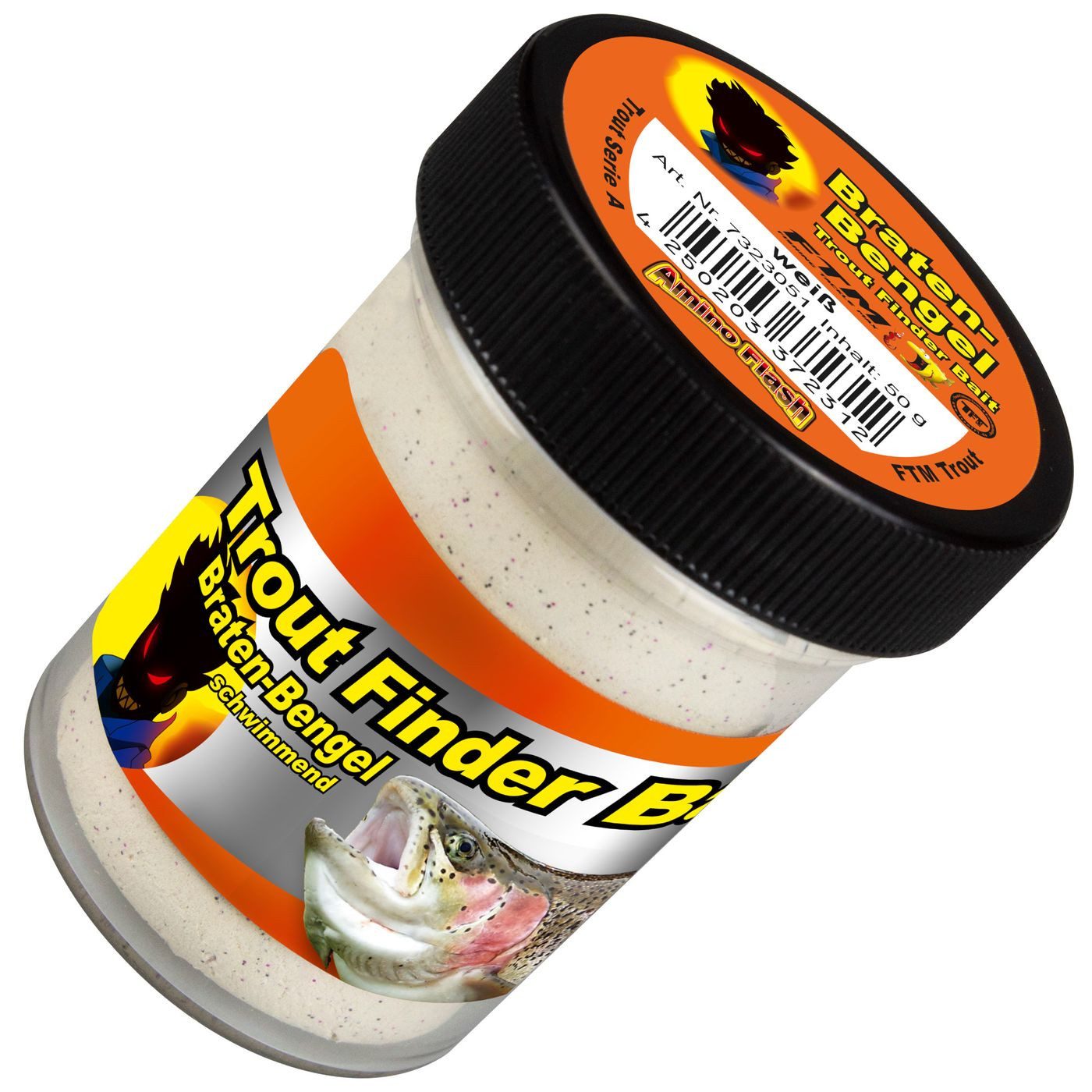 FTM Forellenteig schwimmend Braten Bengel - 50g Forellenpaste - Der Forellenteig von FTM ist eine gut formbare Paste, die für das Angeln auf Forellen konzipiert wurde. Der Teig ist mit Braten Aroma versehen, was eine starke Wirkung auf Forellen hat. Die Forellenpaste eignet sich für das Schleppangeln sowie auch zum Angeln von unten nach oben auftreibend.