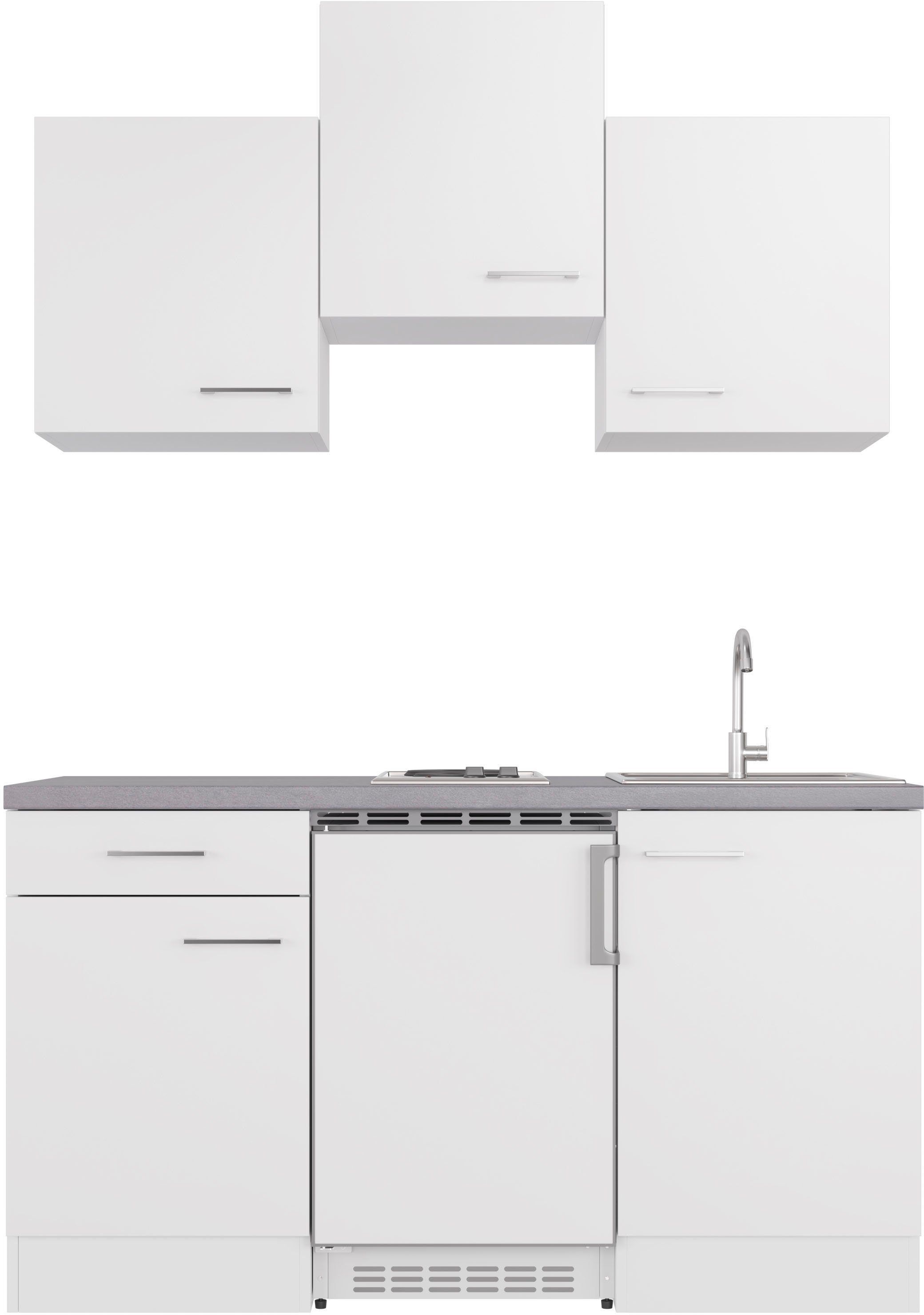 Ausstattung | Durchgehende Arbeitsplatte Einlegeböden höhenverstellbar Laufleisten der Schubkästen aus Metall Metallgriffe Seitenverkehrt stellbar Sockelhöhe nicht verstellbar inkl. Edelstahl-Einbauspüle, ohne Abtropffläche mit E-Geräten weitere Informationen zu Elektrogeräten: siehe Спеціфікація товара (на німецькій) |
