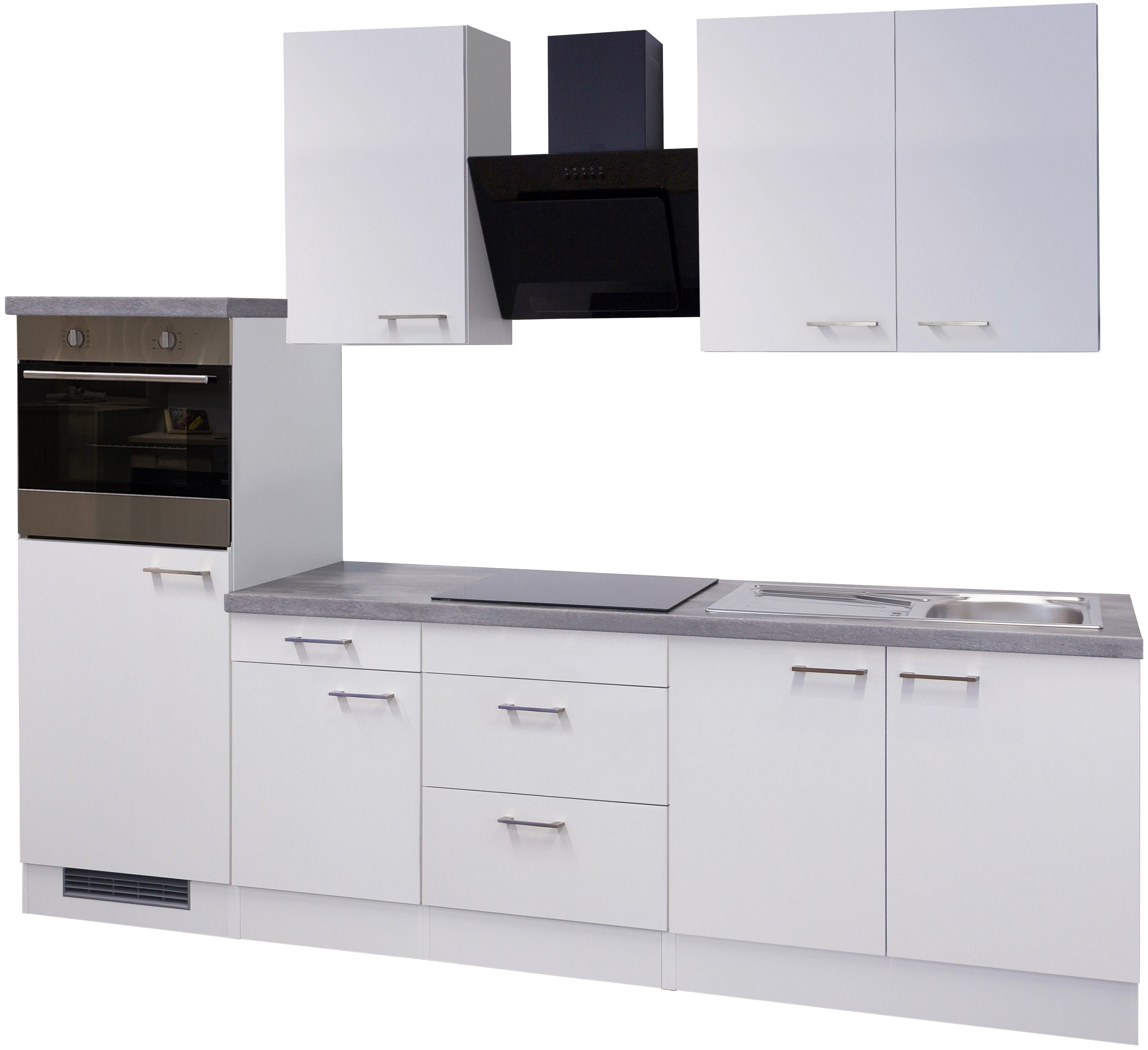 Wissenswertes | Produktdetails Gesamtbreite: 270 cm Türanschlag: beliebig Frontdekor: weiß Material: melaminbeschichtete Spanplatte Korpusdekor: weiß Sockelhöhe: 13,6 cm Sockel nicht verstellbar Setdetails 2 Hängeschränke Art: Oberschrank Maße (B/T/H): 50/32/89 cm Türanschlag: wechselbar Anzahl Türen: 1 Anzahl Einlegeböden: 2 Anzahl Fächer: 2 Hängeschrank Art: Oberschrank Maße (B/T/H): 50/32/89 cm Anzahl Türen: 1 Anzahl Einlegeböden: 2 Unterschrank Material: melaminbeschichtete Spanplatte Maße (B/T/H): 50/60/82 cm Türanschlag: wechselbar Anzahl Türen: 1 Anzahl Schubladen: 1 Schubkasteninnenmaß (B/T/H): 43,3/38,3/0,75 cm Anzahl Einlegeböden: 1 Anzahl Fächer: 2 Kochfeldunterschrank Maße (B/T/H): 60/60/86 cm Anzahl Auszüge: 2 Auszugsinnenmaß (B/T/H): 53,4/45/24 cm Auszugsschrank Material: melaminbeschichtete Spanplatte Anzahl Einlegeböden: 2 Spülenschrank Maße (B/T/H): 100/60/82 cm Anzahl Türen: 2 Spülenmaße: 86x43,5 cm Umbauschrank für Ofen und Kühlschrank Maße (B/T/H): 60/60/169,5 cm Einbau-Fachmaß Kühlschrank (B/T/H): 56/55/88 cm Einbau-Fachmaß Ofen (B/T/H): 56,7/55,5/59,0 cm Mit Arbeitsplatte Arbeitsplatte Ausführung: HPL/CPL Maße (L/B/H): 210x60x3,8 cm Arbeitsplattendekor: betongrau |