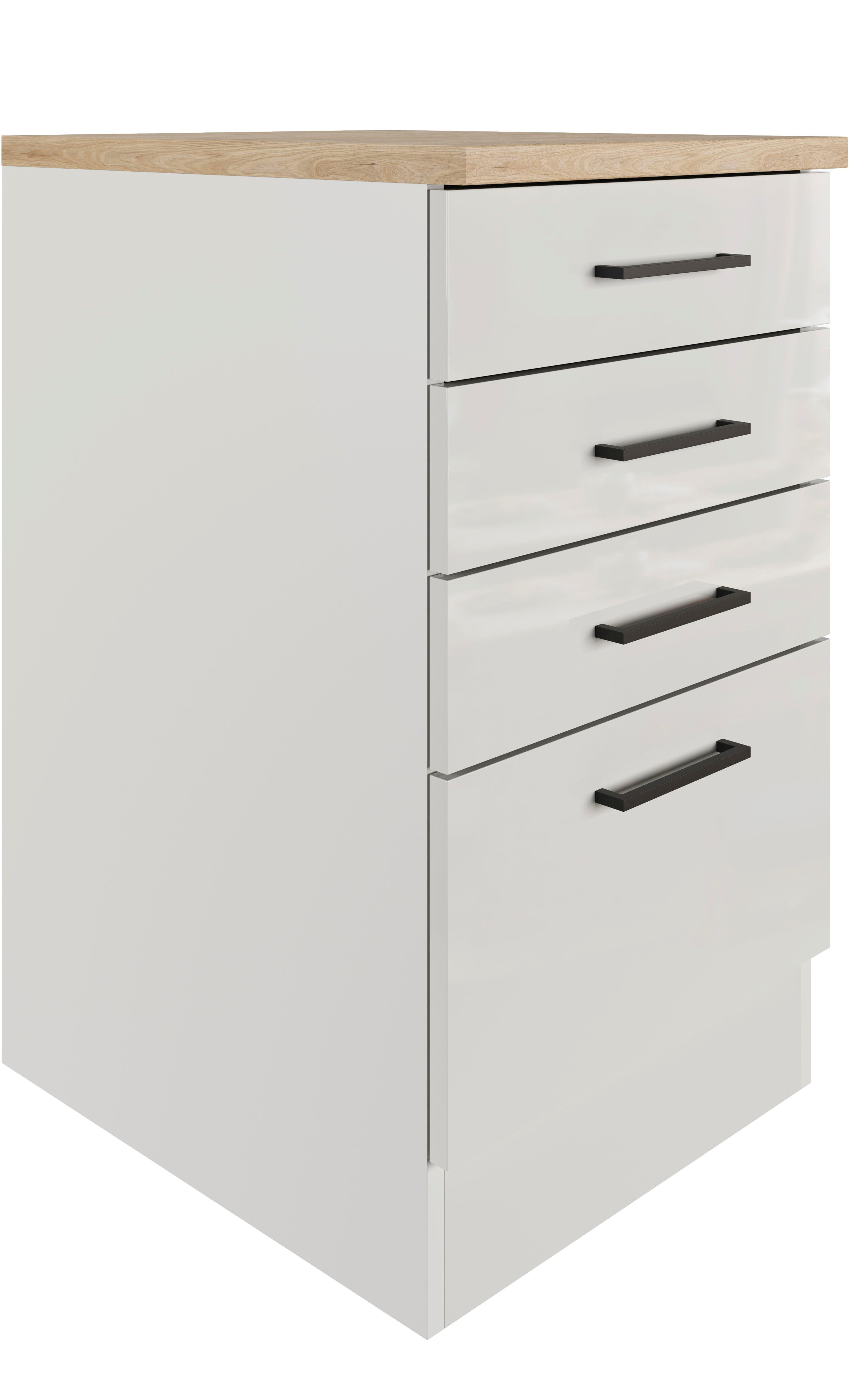 Funktionales Design und mehr Stauraum für dein Zuhause — das bekommst du mit dem Unterschrank »Lund« von Flex-Well. Die Schubladen bieten dir weitere Unterbringungsmöglichkeiten. Die modernen Bügelgriffe aus Metall sind langlebig und unterstreichen den Stil. Hergestellt wurde das Produkt in Deutschland, das für seine hohen Qualitätsstandards bekannt ist.