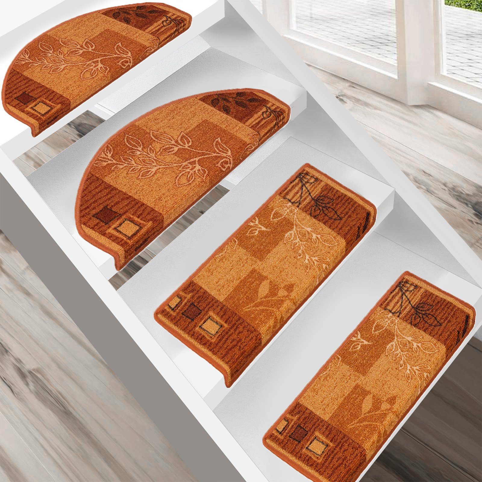 Ausgestattet sind die Stufenauflagen mit einem stabilen Winkel sowie einem großzügig dimensionierten, 40 mm breiten Klebestreifen, der ein hohes Maß an Festigkeit gewährleistet. Daneben sorgt die farblich passende Umkettelung für einen sauberen Abschluss an den Rändern der Stufenauflagen und schützt die Kanten vor unschönem Ausfransen. Erhältlich sind die Treppenschoner in zwei unterschiedlichen Ausführungen: Als rechteckige Ausfertigung, die sich besonders für große Treppenstufen eignet, oder als halbrunde Варіанти, die sich auch sehr gut für eine Nutzung auf Wendeltreppen anbietet.