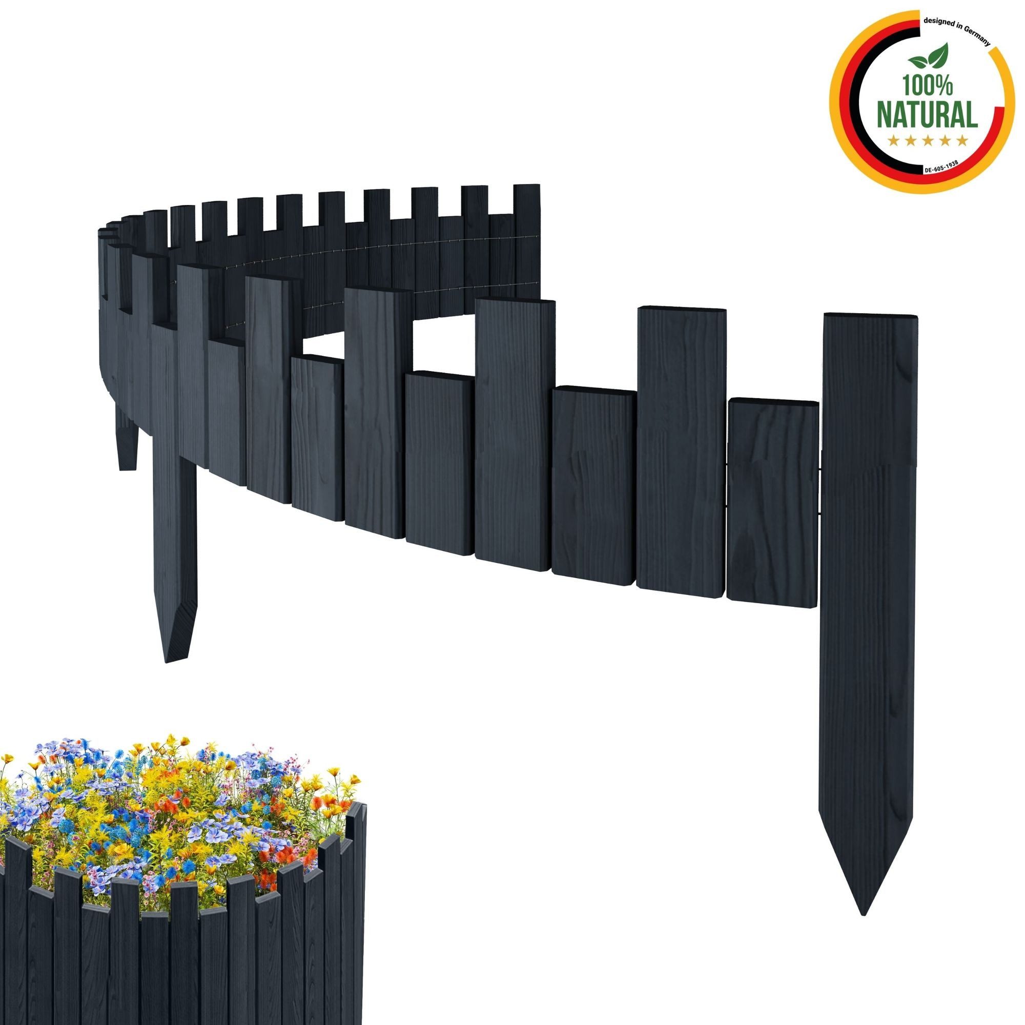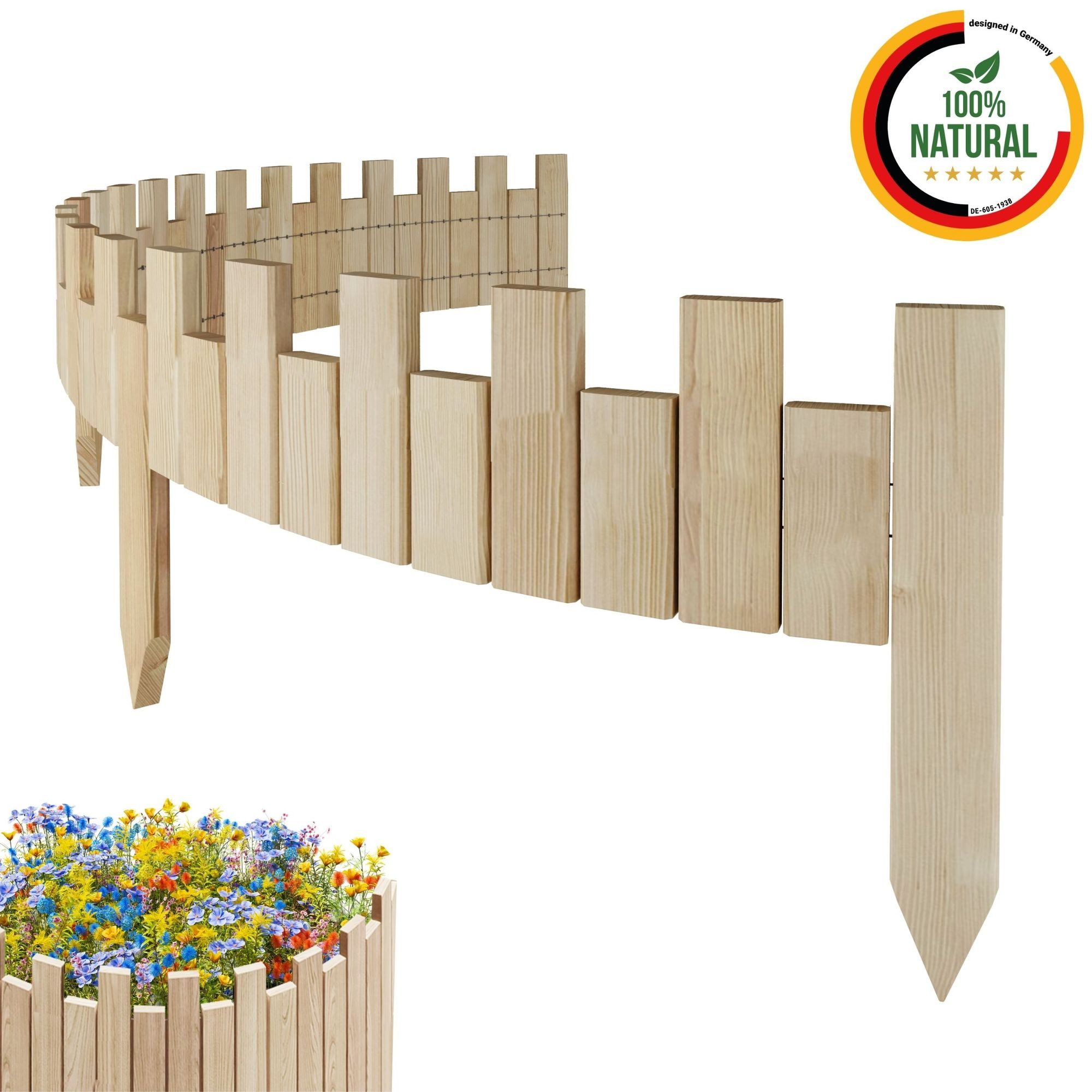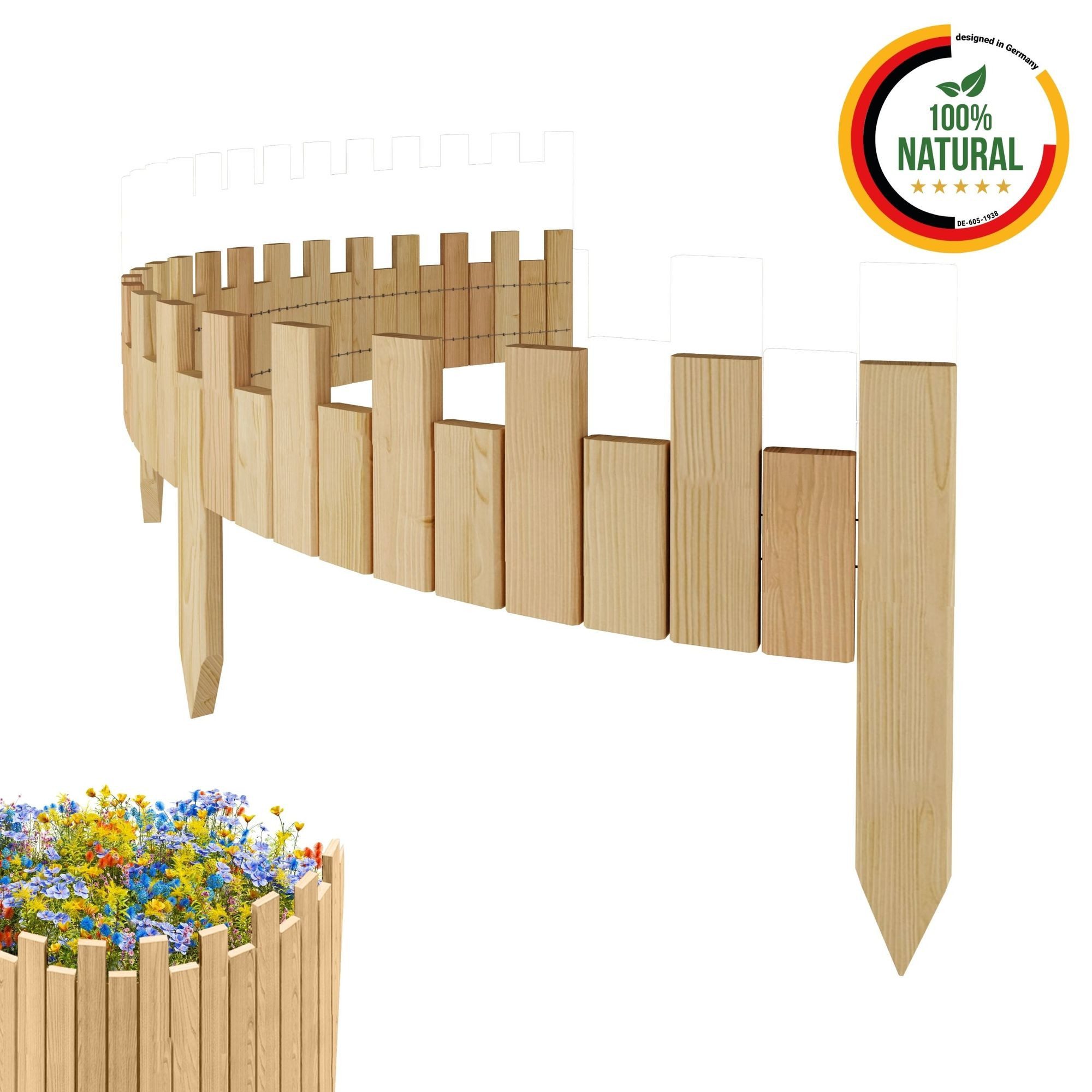 Das 100 % natürliche Holz ist plastikfrei, nachhaltig und biologisch abbaubar. Diese Beeteinfassung aus Holz ist eine umweltfreundliche Alternative zu Kunststoff-Beetbegrenzungen. Einflussfaktoren wie Feuchtigkeit und UV-Strahlung können diesen Prozess beschleunigen, doch regelmäßige Pflege erhält die Langlebigkeit.