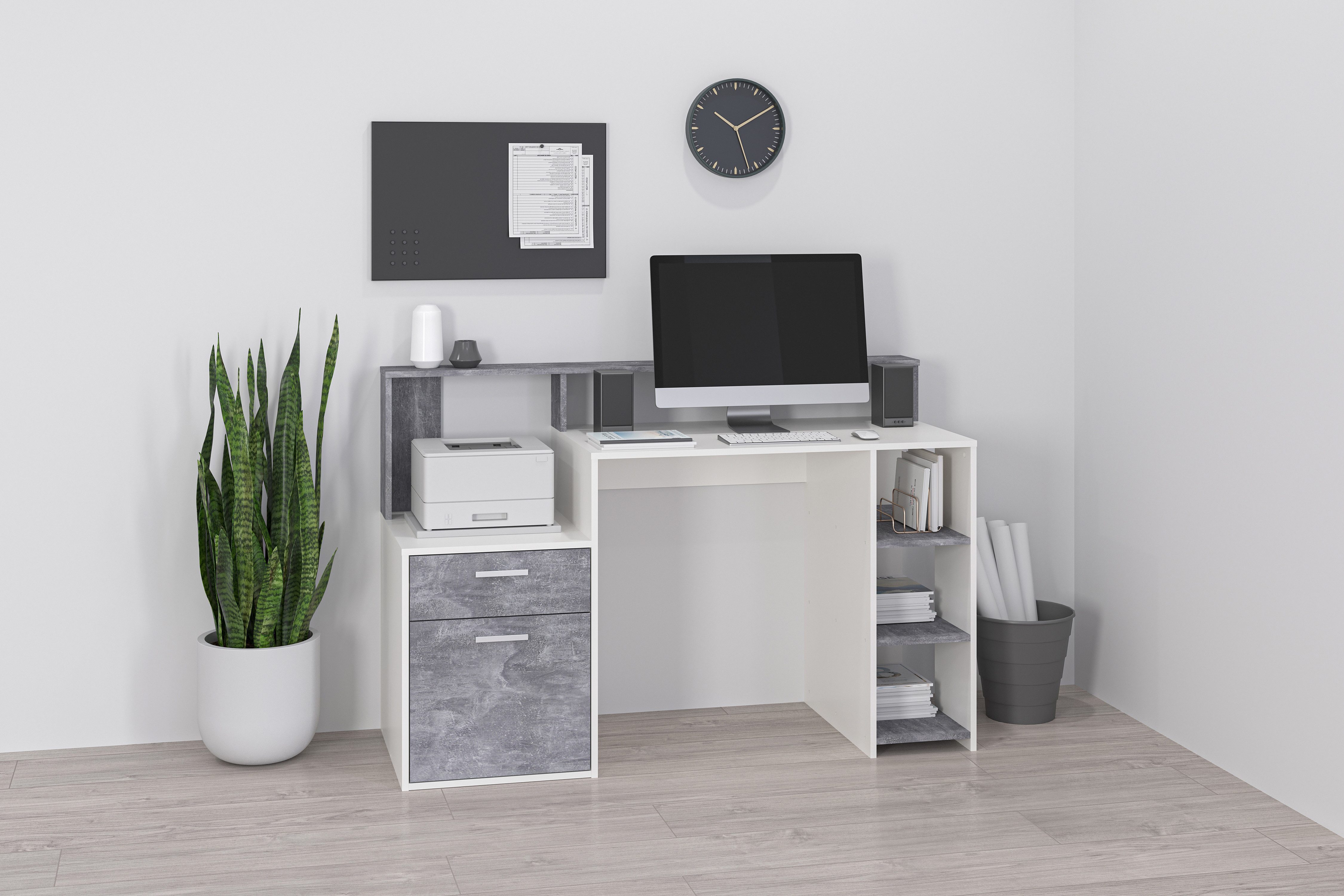 Ergänzende Maßangaben | Maße Arbeitsplatte (B/T): 95/53,5 cm Max. Belastbarkeit der Arbeitsplatte: ca. 25 kg Maße der oberen Ablagefläche (B/T): ca. 138,5/14,5 cm Max. Belastbarkeit der oberen Ablagefläche: ca. 5 kg Maße der Ablagefläche links (B/T): 43,6/53,5 cm Max. Belastbarkeit der Ablagefläche links: ca. 15 kg Fachinnenmaße der offenen Fächer (B/H): ca. 24/22 cm Höhe des offenen Faches ohne Einlegeböden: ca. 75 cm Max. Belastbarkeit der Einlegeböden: ca. je 10 kg Schubkasteninnenmaße (B/T/H): ca. 41,4/40/14,5 cm Max. Belastbarkeit des Schubkastens: ca. 5 kg Fachinnenmaße hinter der Tür (B/H): ca. 41,4/36 cm |