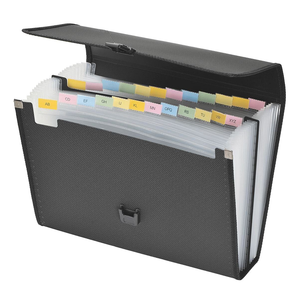 Praktische Fächermappe mit 24 dehnbaren Fächern und Klarsicht-Taben zum Einschieben von beschrifteten Einsteckschildern