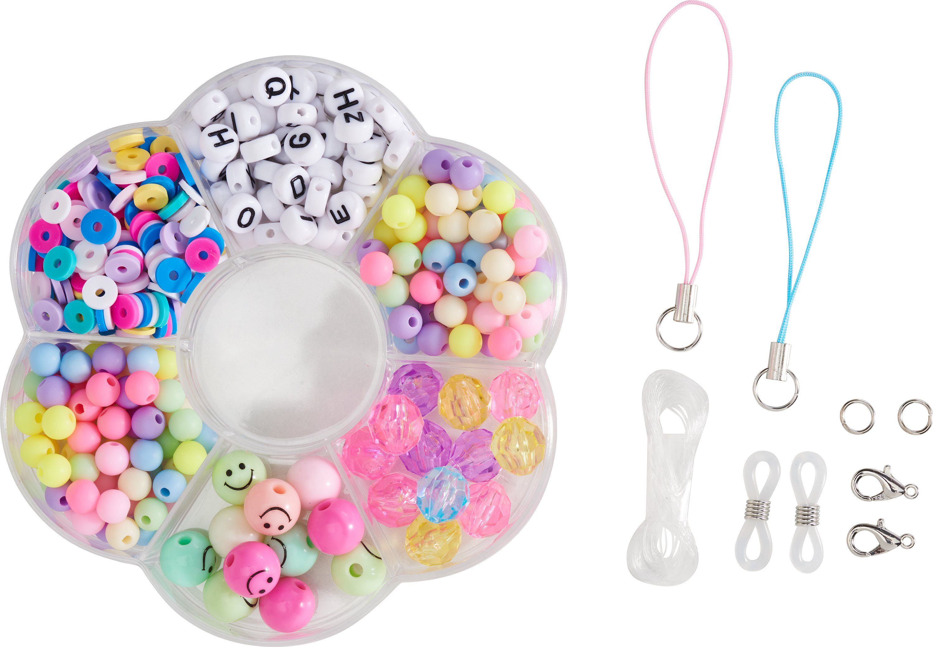 Designen Sie mit diesem Phone Charms Set 'Rainbow Smile' einzigartige und individuelle Schmuckstücke. Das Set enthält 349 Teile mit unterschiedlichen Perlen und Zubehör. Die Perlen haben einen Ø von ca. 6 mm und 10 mm. Eine bebilderte Anleitung mit 3 Kreativideen ist ebenfalls enthalten. Lassen Sie Ihrer Kreativität einfach freien Lauf und fertigen Sie Armbänder, Ketten für Sonnenbrillen, Handyketten und vieles mehr.