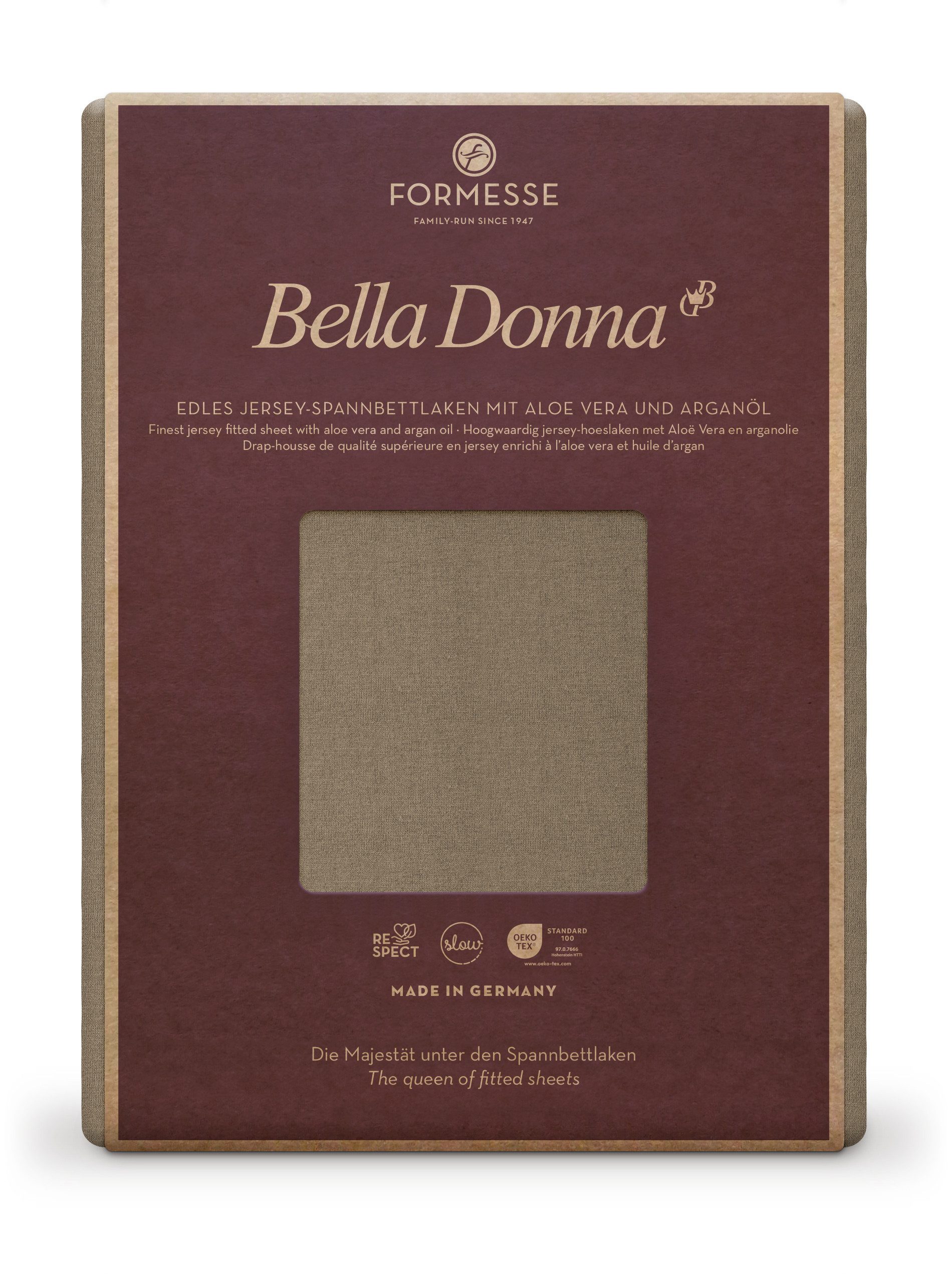 Bella Donna "La Piccola" Jersey Spannbettlaken für Topper bis 10 cm ideal für Ihr Boxspringbett La Piccola: Für weiche, dünne Auflage-Matratzen (Topper) bis 10 cm Höhe. Material:97 % Baumwollzwirn (langstapelig), 3 % Elastan, Aloe vera & Arganöl Erstklassig verarbeiteter und veredelter Zwirn aus langfaseriger Baumwolle, gestrickt zu einem blickdichten, besonders schön schweren Tuch, macht Bella Donna Jersey zum Spannbetttuch der Oberklasse. Das hochwertige Laken sitzt wie maßgeschneidert auf jeder Matratze. Aloe vera & Seidenproteine verleihen dem prächtigen Betttuch seine seidige Haptik und herrlichen Glanz. Dabei ist das hochwertige Bettlaken pillingfrei, farbecht und außerordentlich langlebig. Kompromisslose Qualität – so königlich kann Schlafen sein! Zu jedem Bella Donna Spannbettlaken gehört ein Etikett mit Розмір und Pflegesymbolen. Die „kluge Ecke“ mit dem Etikett ziehen Sie über die rechte obere Ecke der Matratze – und schon sitzt das Betttuch perfekt. Bei unseren Bella Donna Jersey-Spannbettlaken entsteht kein Pilling (Knötchen). Denn wir verwenden ausschließlich edelsten Zwirn aus Baumwolle mit besonders langen Fasern. Bitte beachten Sie: Bugfalte – das Qualitätsmerkmal für ein gutes Spannbettlaken Vielen kommt die Falte in der Mitte unserer Spannbettlaken komisch vor, doch es handelt sich gar nicht um einen Schönheitsfehler, sondern um ein Qualitätsmerkmal. Die sogenannte „Bugfalte“ entsteht bei der Herstellung und steht für einen besonders qualitativen Produktionsprozess. Sie verschwindet beim Gebrauch des Spannbettuchs nach und nach. Hier erklären wir, warum es die Bugfalte überhaupt gibt und was sie mit guter Qualität zu tun hat.merkmal für ein gutes Spannbettlaken -