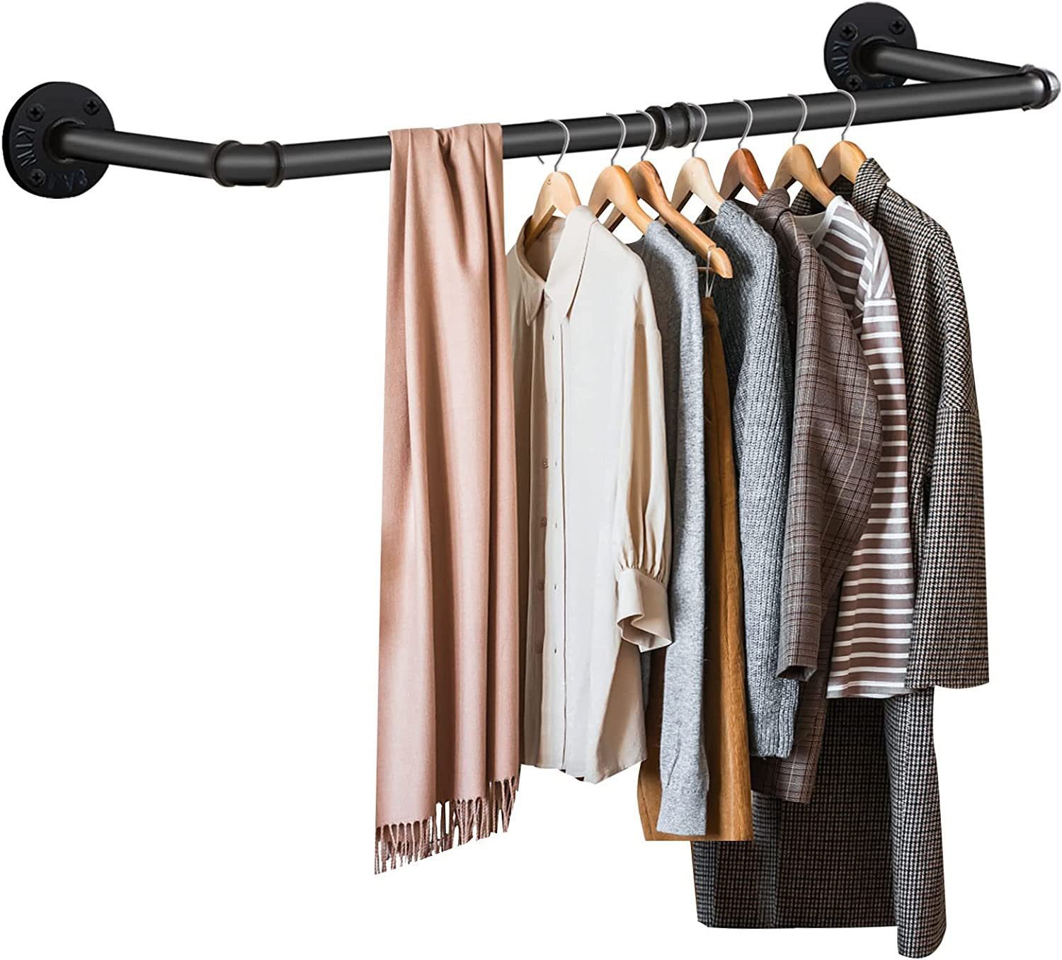 Industrieller Stil Kleiderstange Der Abstand zwischen Wand und Schiene beträgt 25 cm, was für eine große Art von Kleidern und Kleiderbügeln ausreichend ist. Mit diesem Abstand sparen Sie Platz und räumen Ihre Kleidung problemlos auf. Vintage-Design, geeignet für Heimtextilien und praktisch zum Aufhängen Ihrer Kleidung. Lagern Sie Ihre Kleidung ohne einen Schrank, vermeiden Sie die Kümmer über die Falten und finden Sie sie leicht. Sie können den wandmontage Kleiderstange problemlos in wenigen Minuten installieren.