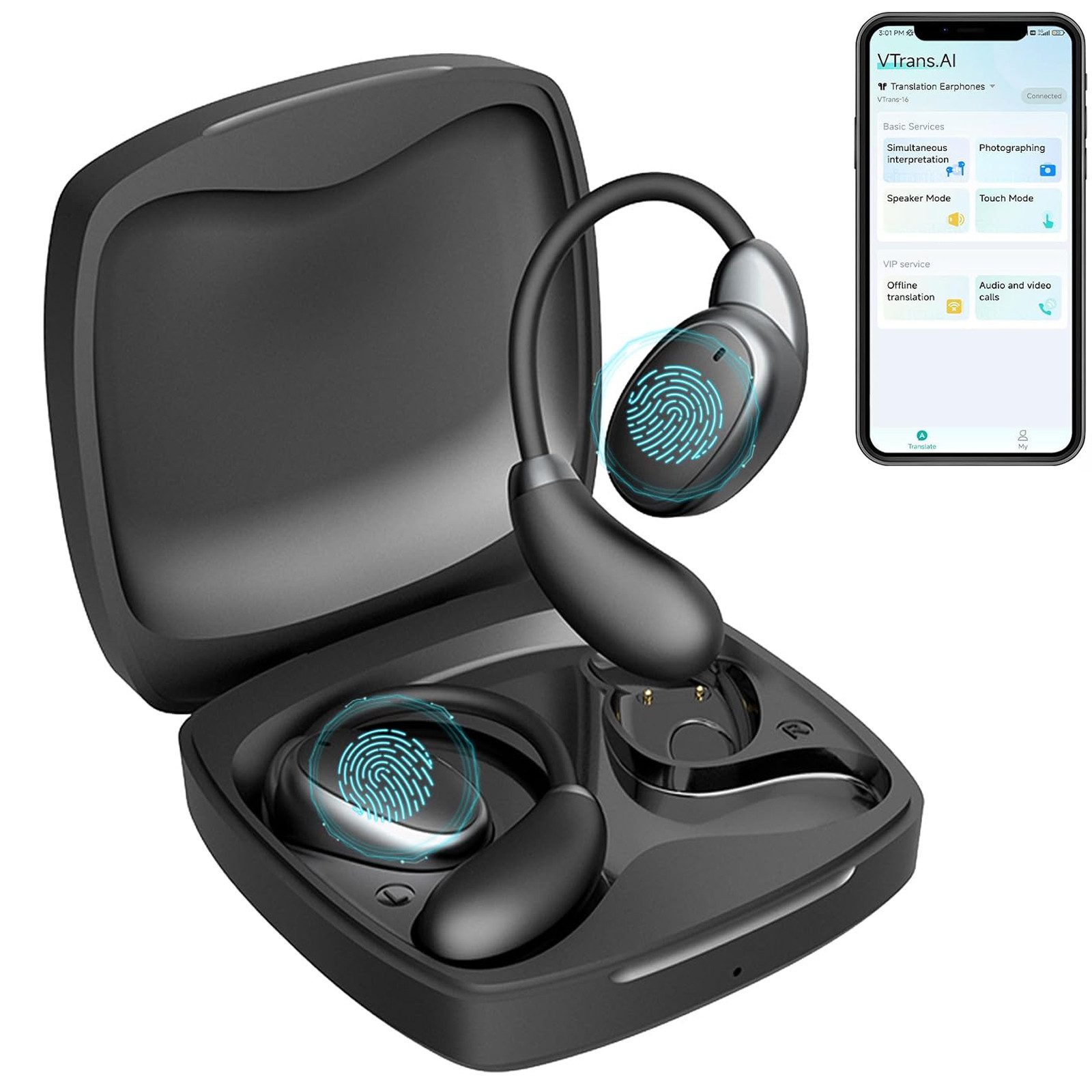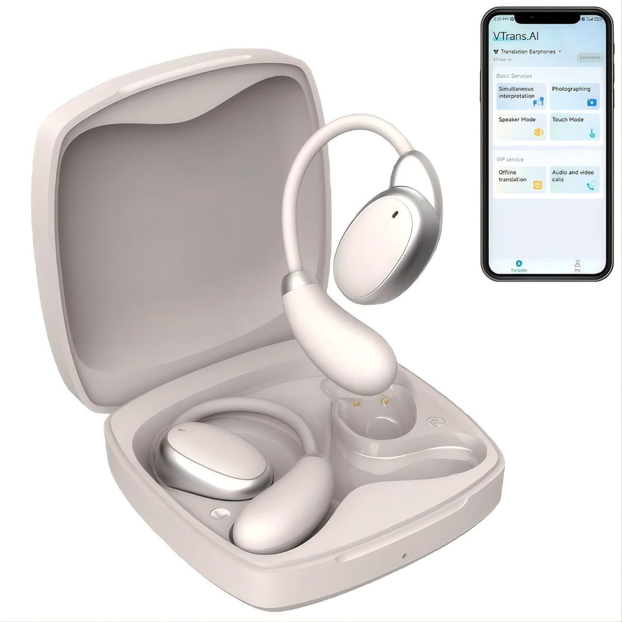 Sprachsteuerung | 3-in-1 Übersetzungskopfhörer mit echtzeit übersetzung, Bluetooth Kopfhörer mit Ohrhaken und ENC Mic |