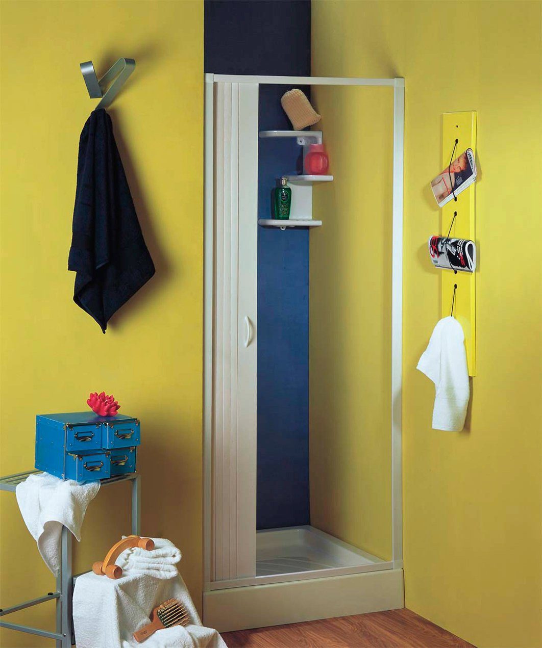Nischendusche "Rimini" mit Faltsystem. Anschlag wahlweise bei Montage links oder recht. Extra großer Einstieg. Hochwertige Verarbeitung mit leichtgängigen Elementen. Profile aus robustem Kunststoff. Variabel Einstellung der Breite 80-100 cm.
