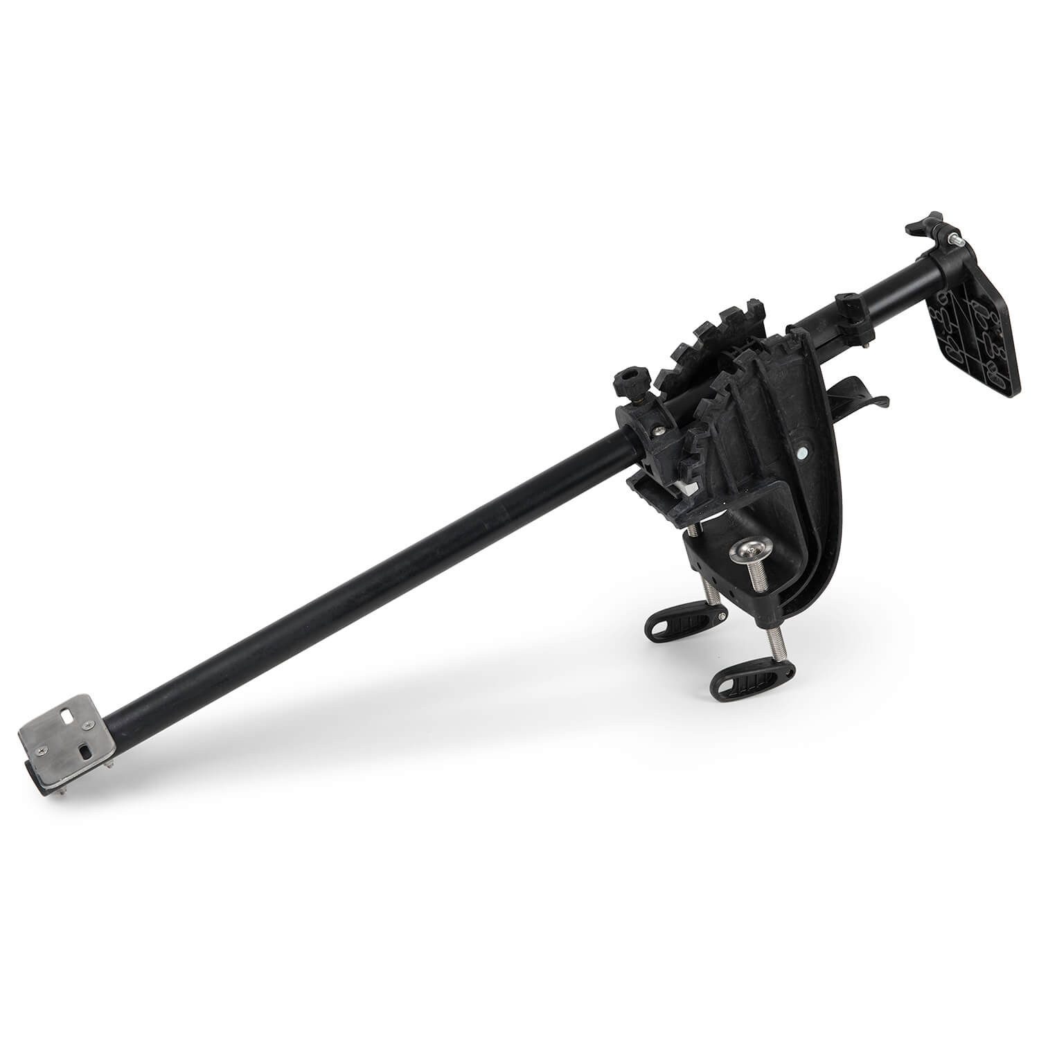 Die clevere Heckhalterung ermöglicht ein einfaches Hochklappen der Geberstange - ideal für Flachwasserbereiche. Die Edelstahl-Montageplatte für den Geber sorgt für Langlebigkeit, während die verstellbare und abnehmbare Echolotplatte mit zahlreichen Fixierpunkten eine breite Kompatibilität gewährleistet.