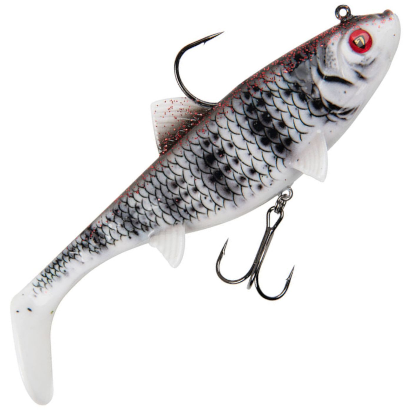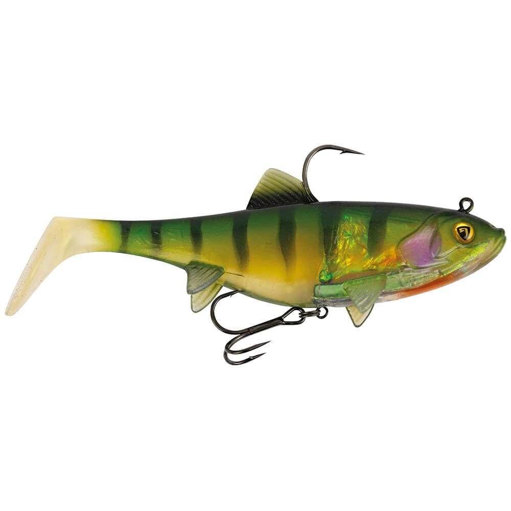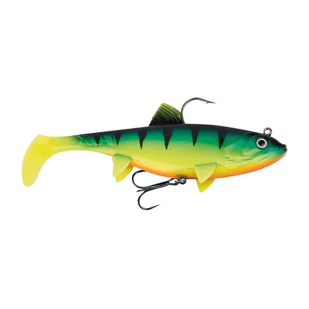 Fox Rage Replicant wobble - Gummifische - Die Gummiköder von Fox Rage besitzen eine Довжина von 7,5cm mit einem Gewicht von 10g und sie eignen sich sehr gut zum Spinnfischen auf Hechte, Zander und Barsche. Durch das integrierte Bauchhaken-Rotationssystem kann sich der Drillingshaken mit drehen, wodurch die Aussteiger im Drill reduziert werden. Das tolle Schwimmverhalten lässt den Gummifisch sehr verführerisch unter Wasser wirken und der große Paddelschwanz gibt dem Kunstköder beim Einholen eine stark rollende Köderaktion. Das Material des Raubfischköders ist sehr robust, wodurch es vielen Fischattacken standhält. Des Впередen ist das Hakensystem sehr stabil gefertigt und auch der Einzelhaken sowie der Drillingshaken sind sehr scharf und halten problemlos den Drill mit einem kapitalen Raubfisch stand.