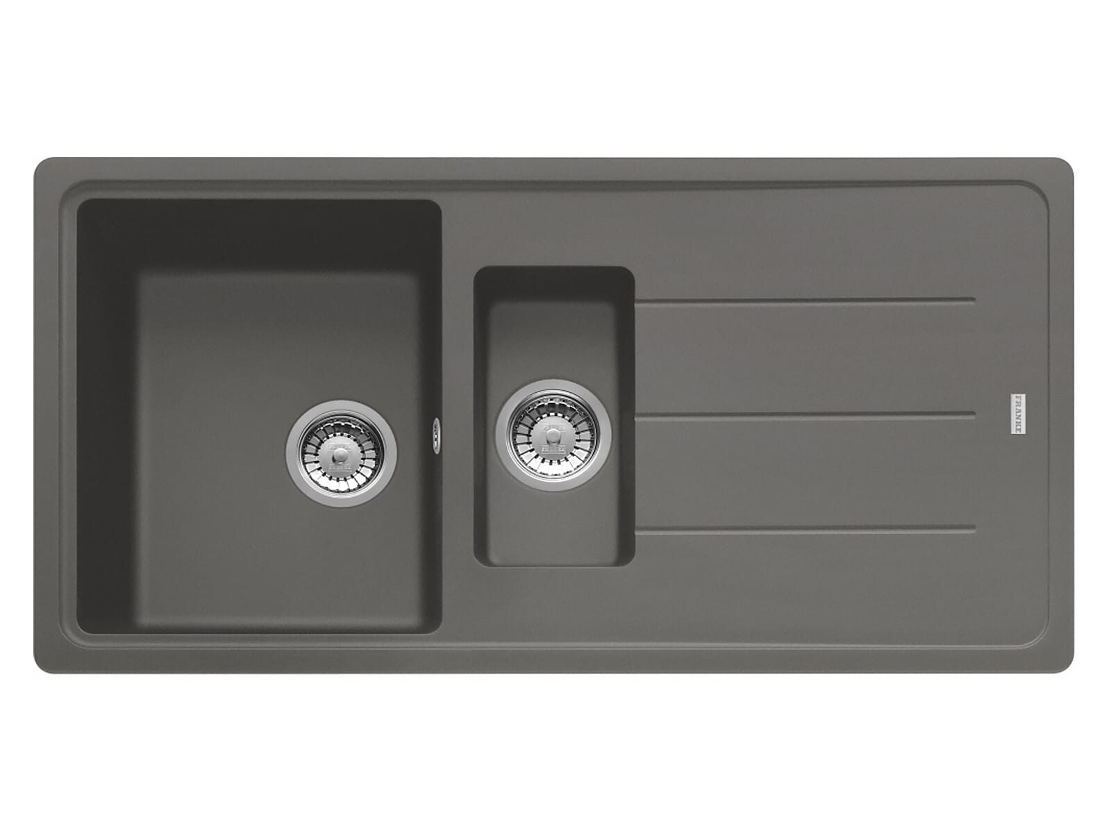 Lieferumfang | Franke Basis BFG 651-97 Steingrau - 114.0256.627 Granitspüle, Siebkorb als Exzenterventil mit 3 ½ " und Stopfenventil 3 ½ ", Abtropfbecken in Edelstahl |