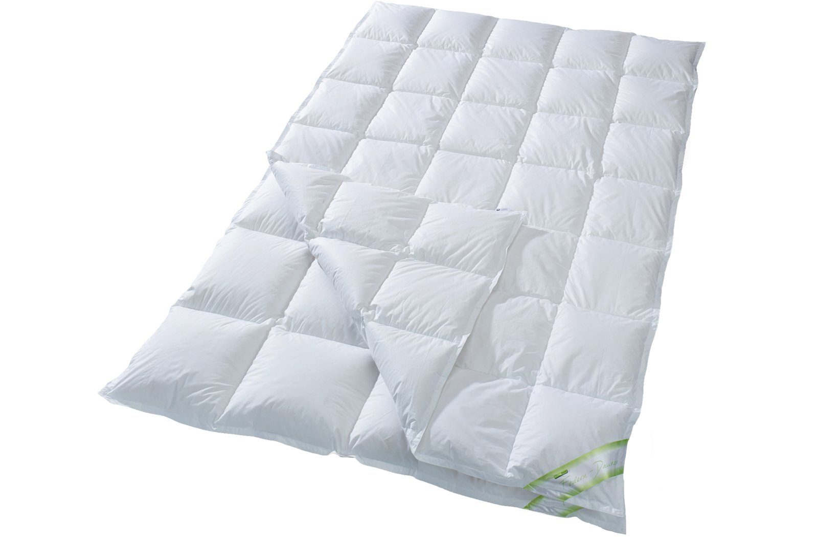 Mit einer 4-Jahreszeiten-Bettdecke sind Sie flexibel und können diese Decke das ganze Jahr über nutzen. Die Decke besteht aus einer Füllung aus 100% Daunen und einem Bezug aus 100% Baumwolle. Durch die Absteppung des Kassettenbettes wird das Verrutschen der Füllung verhindert, diese bleibt permanent gleichmäßig über die Decke verteilt.