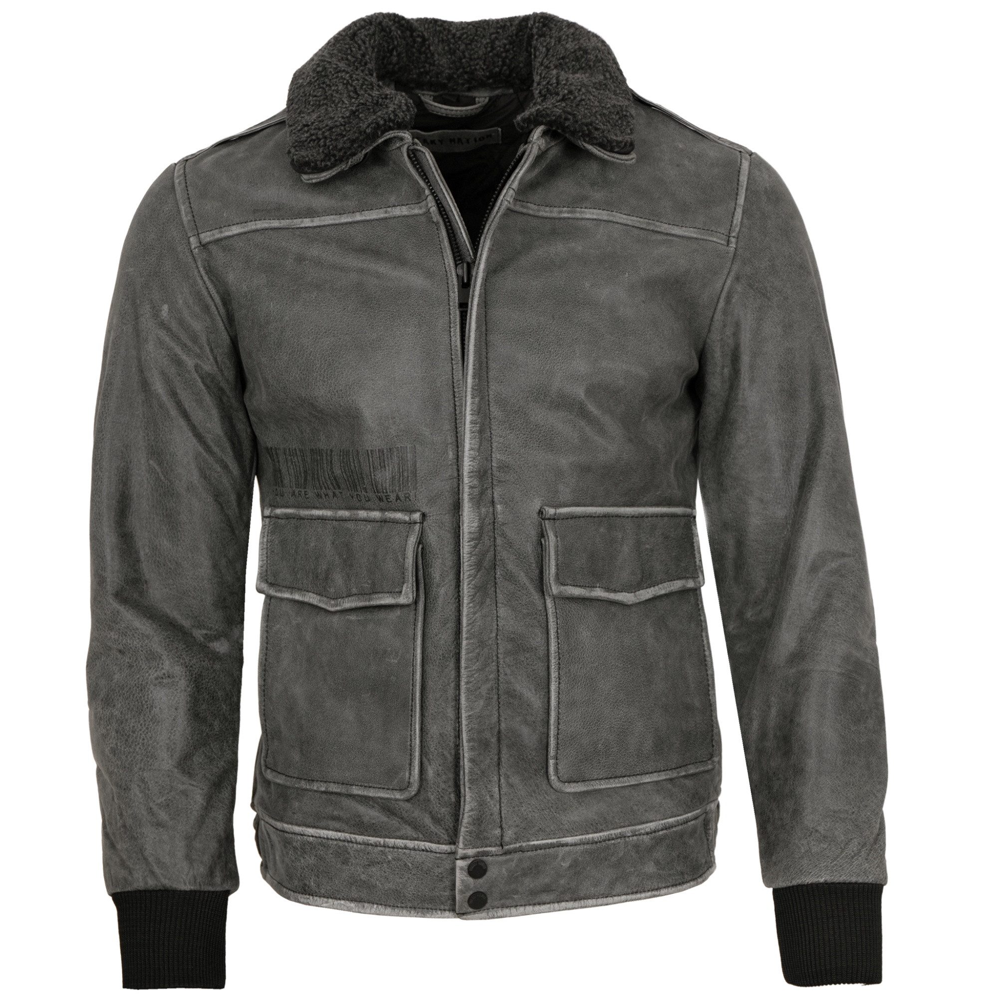 Besondere Merkmale | Freaky Nation - Herren Lederjacke Blouson Rindsleder grau retro |
