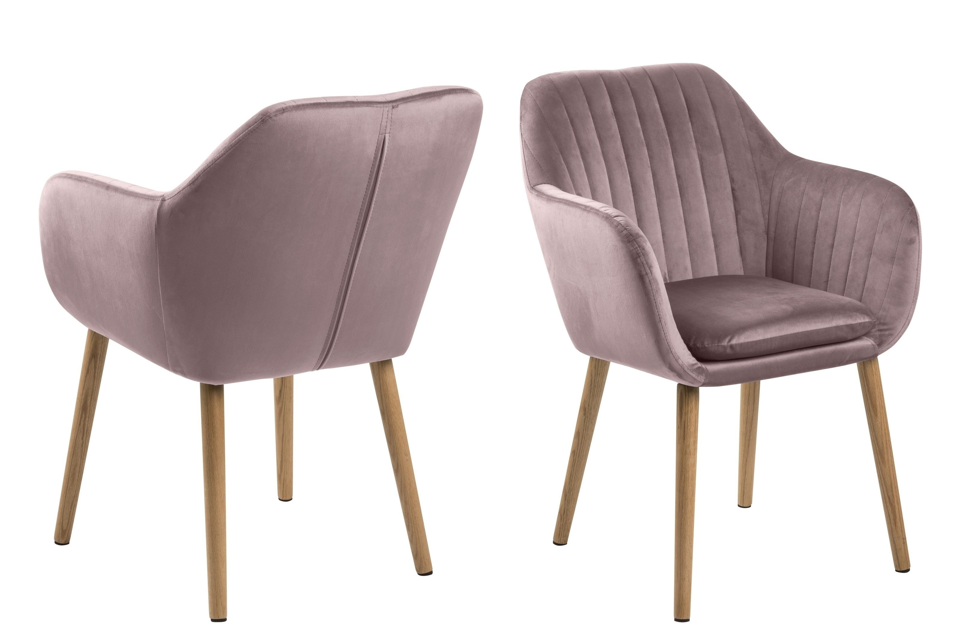 Der Armlehnstuhl Emilia bietet eine perfekte Kombination aus Stil und Komfort. Mit seinen eleganten Maßen von 83 cm Höhe, 57 cm Breite und 61 cm Tiefe passt er ideal in jedes Wohn- oder Esszimmer. Die Sitzfläche aus Vic Stoff in dusty rose verleiht dem Stuhl eine luxuriöse Optik, während die Längsnähte für eine moderne Note sorgen. Das Gestell des Emilia ist aus hochwertiger Eiche gefertigt und wurde ölbehandelt, um die natürliche Schönheit und Langlebigkeit des Holzes zu bewahren. Die Beine haben eine Höhe von 38 cm und bieten eine stabile Basis, die dem Stuhl eine maximale Belastbarkeit von 110 kg verleiht. Die Sitzfläche ist nicht nur optisch ansprechend, sondern auch äußerst komfortabel. Mit einer Sitzhöhe von 49 cm, einer Sitzbreite von 40 cm und einer Sitztiefe von 39 cm bietet der Stuhl optimalen Sitzkomfort. Die Armlehnen sind 23 cm hoch und 5 cm breit, was zusätzliche Unterstützung und Bequemlichkeit bietet. Die Pflege des Emilia ist einfach und unkompliziert. Der pflegeleichte Stoff lässt sich problemlos staubsaugen oder mit einem Fleckenentferner reinigen. Das Gestell aus Eiche sollte mit einem gut ausgewrungenen Tuch und milder Seifenlauge gereinigt werden. Flüssigkeiten sollten sofort entfernt werden, um Flecken und Schäden zu vermeiden.