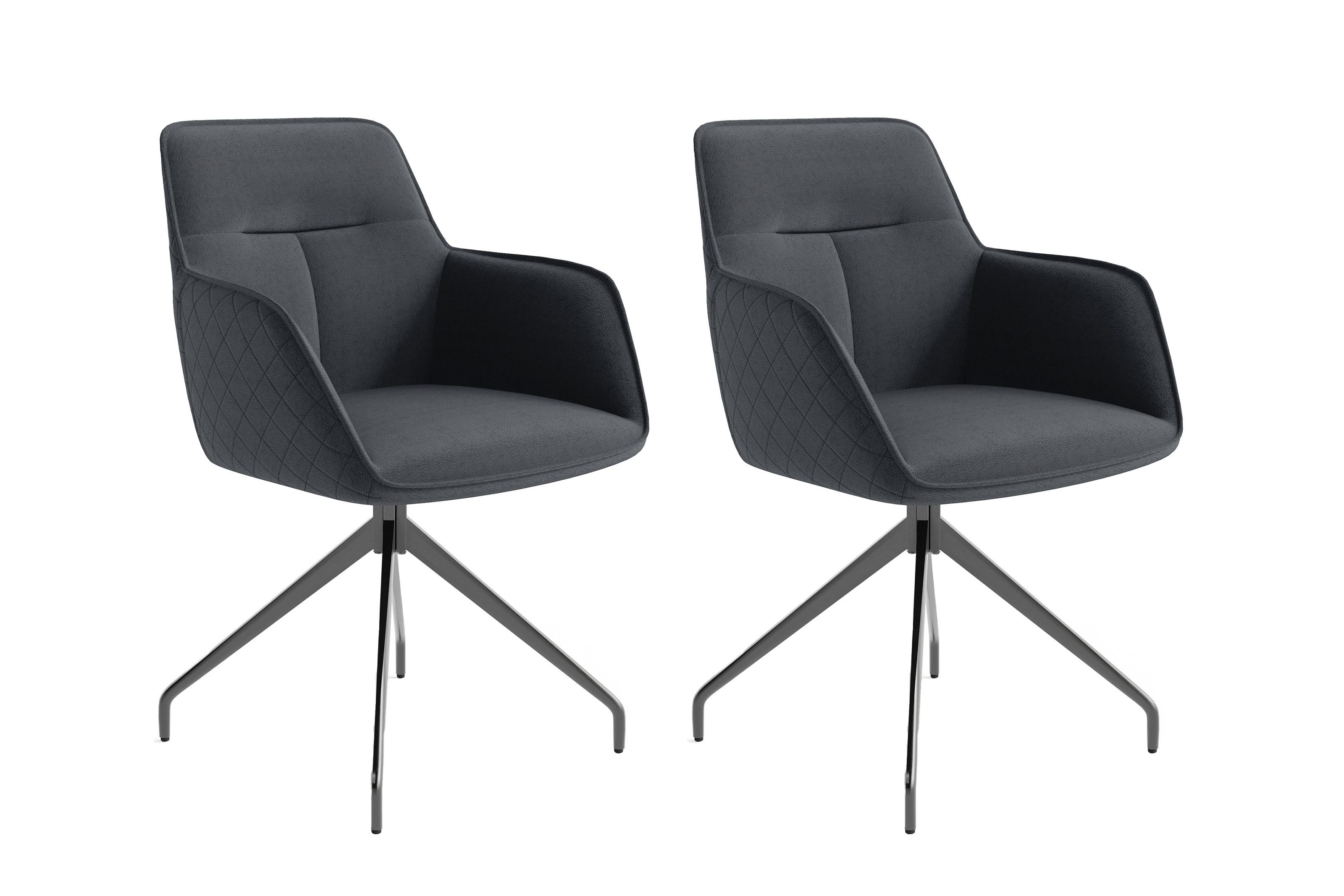 Esszimmerstuhl MEMPHIS Der Stuhl MEMPHIS vereint zeitlose Ästhetik mit innovativen Funktionen und bietet ein außergewöhnliches Sitzerlebnis. Die Sitzschale des Stuhls ist 360° drehbar, sodass man sich mühelos in alle Richtungen bewegen kann. Die Drehbarkeit ermöglicht eine flexible Nutzung und sorgt dafür, dass man stets mühelos aufstehen kann. Das schwarze pulverbeschichtete Metallgestell verleiht dem Stuhl MEMPHIS nicht nur eine moderne Note, sondern auch Stabilität und Langlebigkeit. Die Armlehnen bieten zusätzlichen Komfort und unterstützen eine entspannte Sitzhaltung. Der Bezug aus Vintage-Kunstleder in anthrazit mit einem stilvollen Keder verleiht dem Stuhl eine edle Optik. Das Kunstleder bietet nicht nur eine angenehme Haptik, sondern ist auch pflegeleicht und strapazierfähig. Mit den Maßen von 62 cm Breite, 96 cm Höhe und 60 cm Tiefe bietet der Esszimmerstuhl einen großzügigen und komfortablen Sitzbereich. Seine ergonomische Gestaltung gewährleistet eine angenehme Sitzposition, die den Rücken entlastet und für eine entspannte Atmosphäre sorgt. Der MEMPHIS Stuhl mit Armlehnen ist die ideale Wahl für alle, die nach einem stilvollen und komfortablen Sitzmöbel suchen. Ob im Esszimmer, im Büro oder als elegantes Element im Wohnraum, dieser Stuhl begeistert. Maße: B 62, H 96, T 60 cm Produktdetails: • Stilvolles Design mit stabilen Armlehnen: Das schwarze pulverbeschichtete Metallgestell verleiht dem Stuhl MEMPHIS eine moderne Note und gewährleistet zugleich Stabilität und Langlebigkeit. Die integrierten Armlehnen bieten zusätzlichen Komfort und unterstützen eine entspannte Sitzhaltung. • Eleganter Bezug aus Vintage-Kunstleder: Der Bezug aus anthrazitfarbenem Vintage-Kunstleder mit stilvollem Keder verleiht dem Stuhl MEMPHIS eine edle Optik. Neben der angenehmen Haptik überzeugt das Kunstleder durch Pflegeleichtigkeit und Strapazierfähigkeit. • Großzügiger und komfortabler Sitzbereich: Mit Maßen von 62 cm Breite, 96 cm Höhe und 60 cm Tiefe bietet der