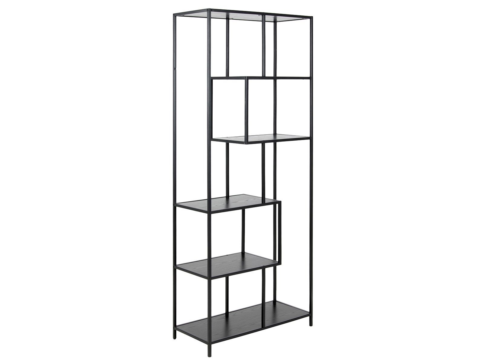 Das Regal "Carney XIII" ist mit einem schwarz-matten Metallgestell erhältlich, welches stilvoll mit Ablageflächen in schwarzer Esche Nachbildung kombiniert wird. Dadurch wird dem Regal eine besonders elegante Optik verliehen. Die Holznachbildung ist qualitativ sehr hochwertig mit täuschend echter Maserung.