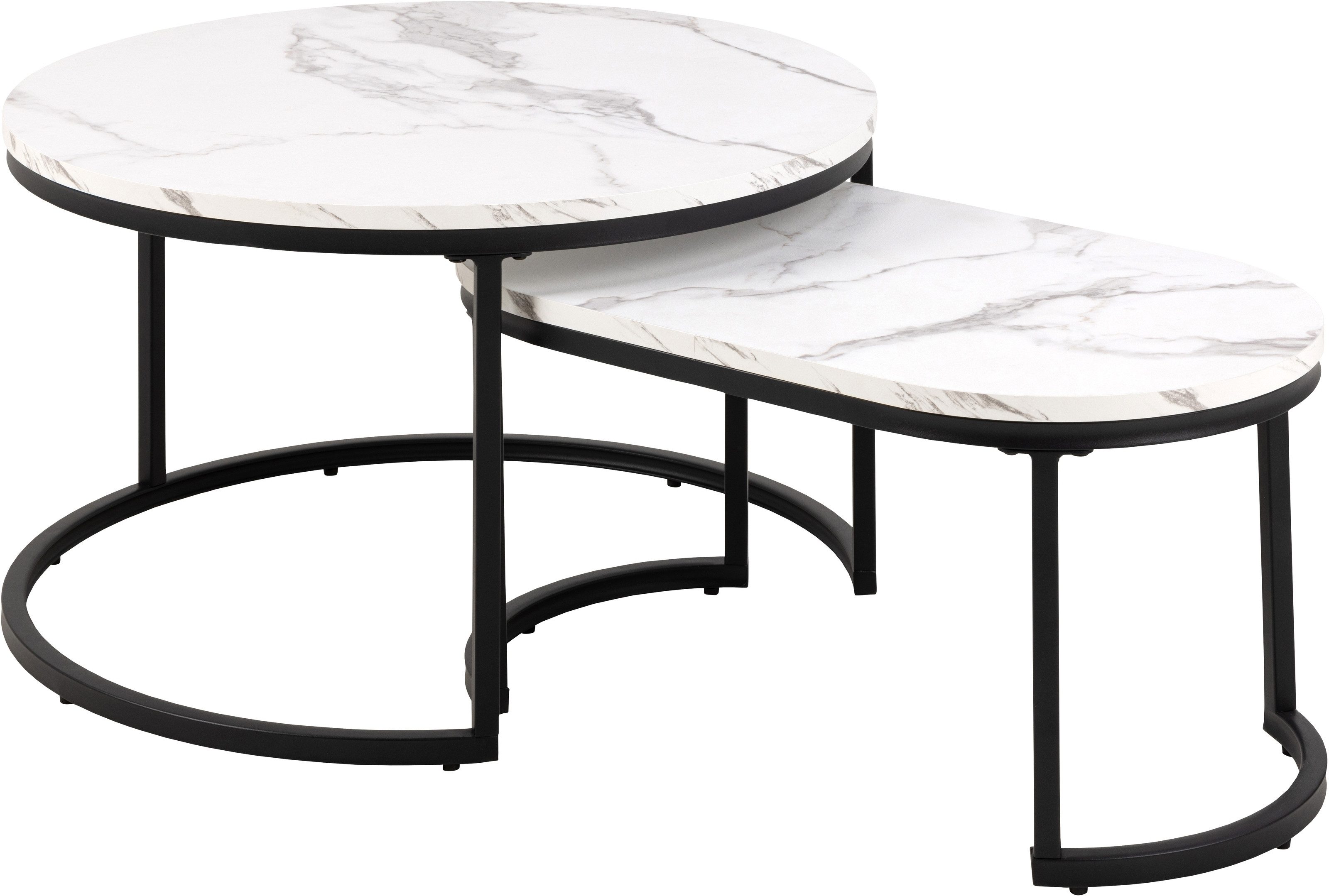 Elegantes Design: Weiße Tischplatten in Marmor-Optik aus robustem MDF, kombiniert mit einem matt schwarzen Stahlgestell, verleiht jedem Raum eine zeitlose Ästhetik.