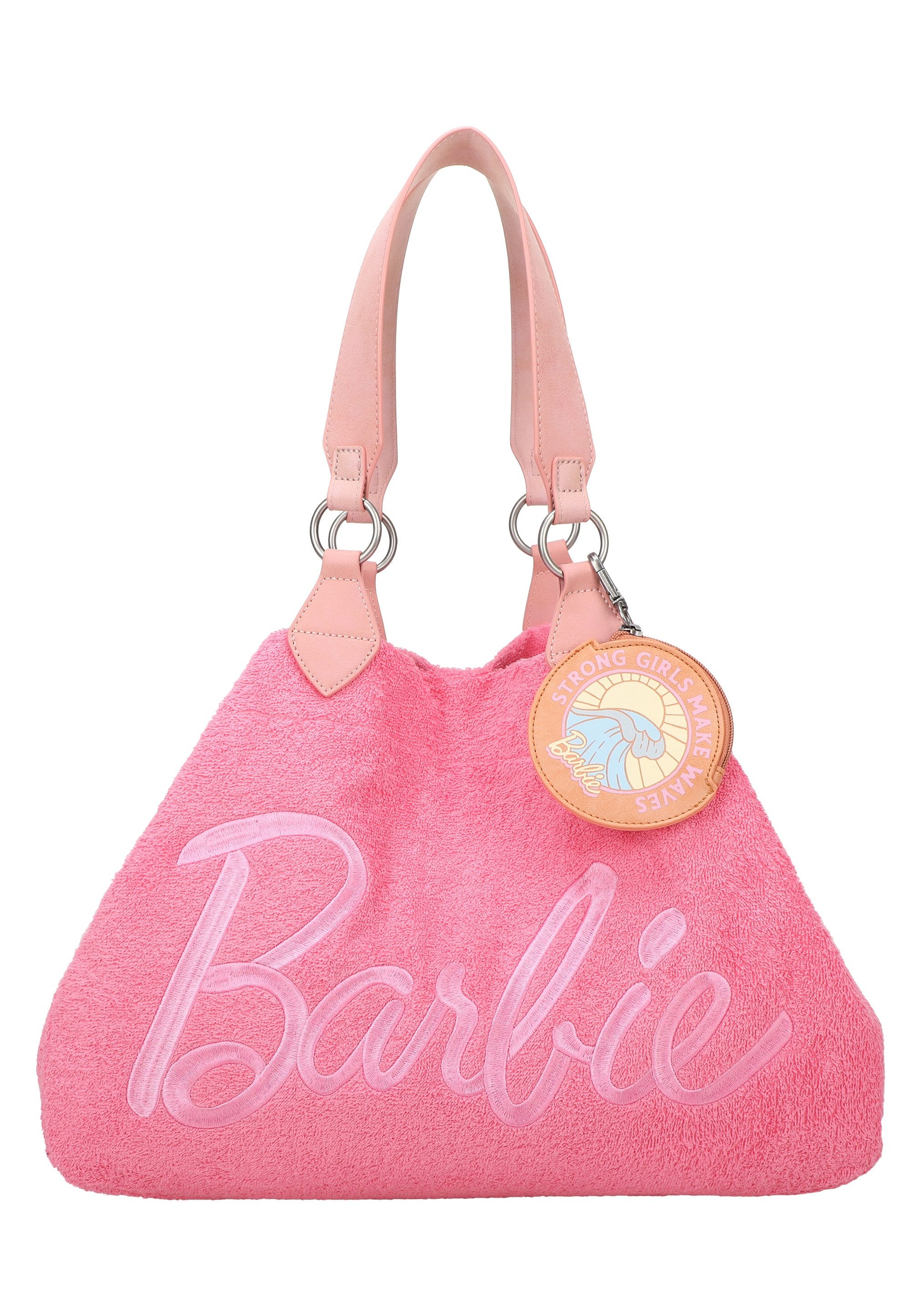 Die "Izzy Medium Frottee Limited Barbie™" ist ein großzügiger Shopper in einer wunderschönen, limitierten Version aus kuscheligem Frottee, der einfach Lust auf eine fantastische Sommersaison macht. In Kooperation mit der Marke Barbie lanciert fritzi 2025 erstmals eine limitierte Kollektionskapsel mit ausgewählten fritzi Styles in tollen, ikonischen Barbie-Looks. Mit einem großen, hochwertig gestickten und farblich abgestimmten Barbie-Schriftzug auf der Vorderseite ist dieser Style einfach ein absolutes Highlight für jeden Barbie-Fan - in diesen ultraweichen Beach-Look verliebt man sich einfach sofort. Abgerundet wird der Shopper durch einen tollen, abnehmbaren Taschenanhänger mit Reißverschluss und einem schönen Barbie Wellenaufdruck im Retro-Look. Innen verzaubert das Modell mit einem Zickzack-Muster und vielen kleinen Barbie-Logos, die aufgedruckt sind. Ein praktisches Reißverschlussfach im Futter sorgt für Ordnung. Das Hauptfach der Tasche bietet viel Stauraum und lässt sich bequem mit einem Druckknopf verschließen.