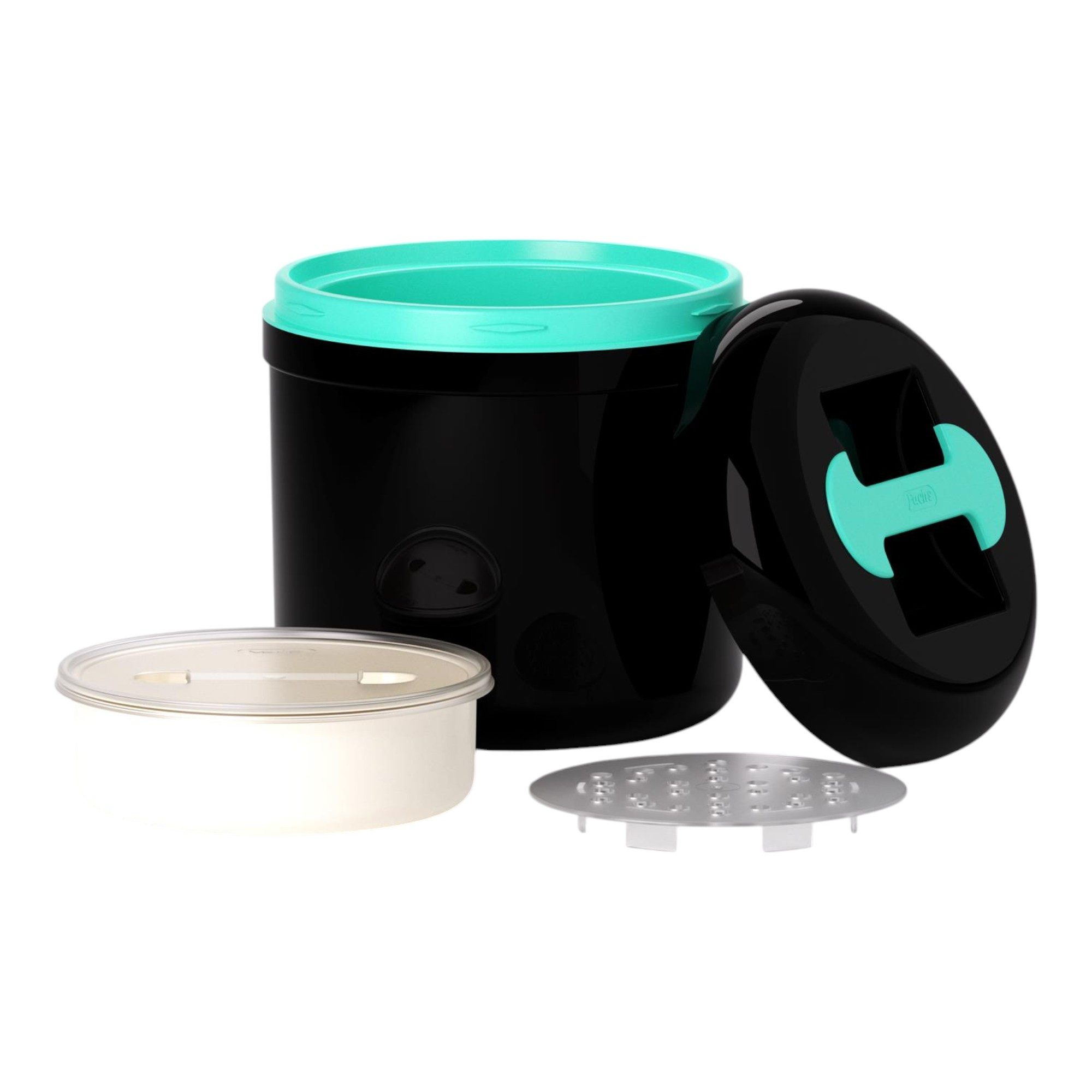 Mit diesem praktischen Behälter in Eimerform können Lebensmittel oder Eiswürfel optimal aufbewahrt werden. Sowohl Eimer, als auch Deckel sind voll thermoisoliert und können so den Inhalt entsprechend warm oder kalt halten. Im Lieferumfang enthalten sind außerdem ein Einsatzbehälter mit 1,2 Liter Fassungsvermögen, welcher mikrowellengeeignet ist und eine Abtropfunterlage.