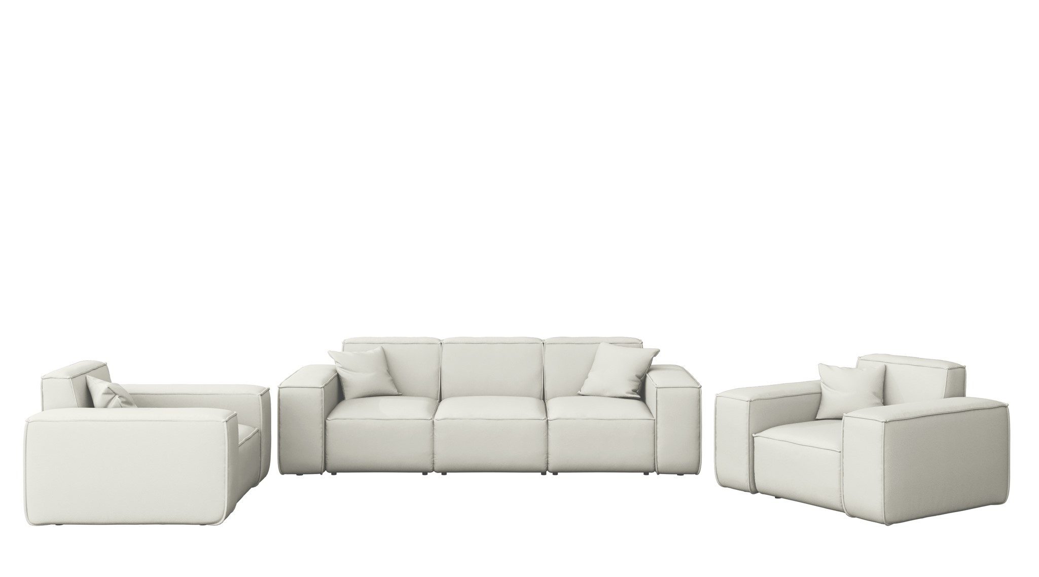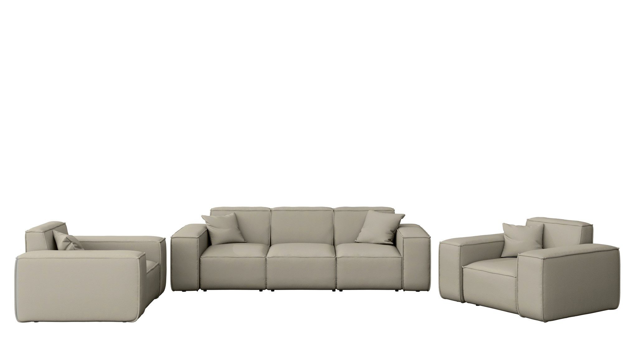Lieferumfang | 1 x 3er-Sofa, 2 x Sessel, 4 Zierkissen |