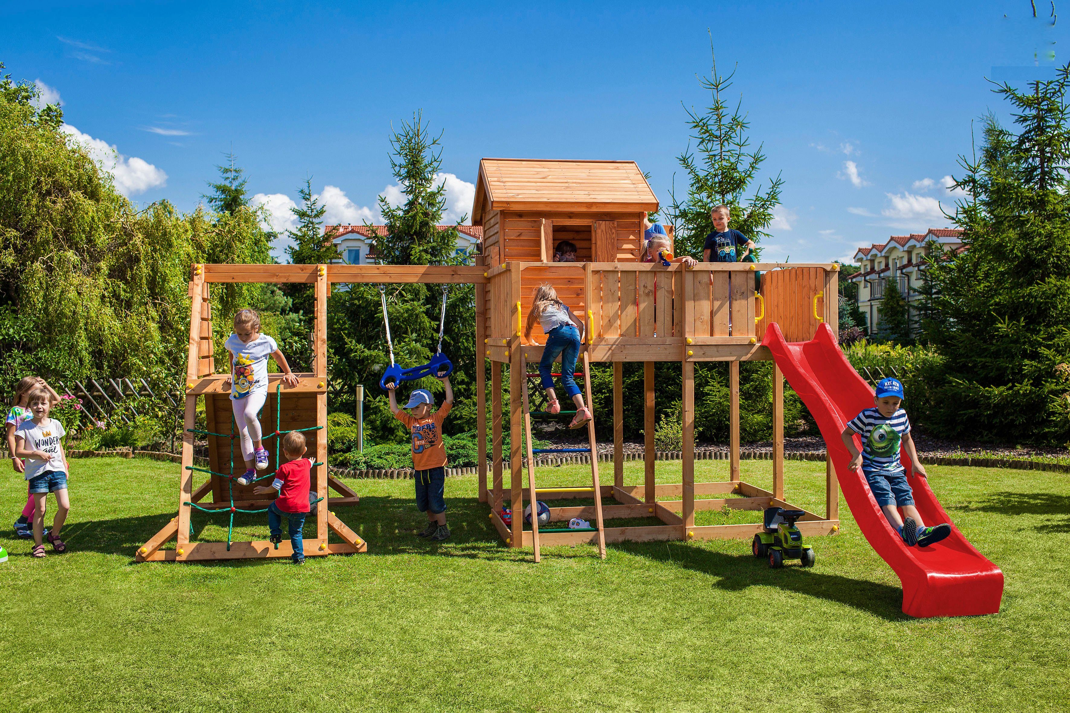 Wenn Sie Ihre Kinder überraschen und einen Spielplatz für sie bauen möchten, dann müssen Sie das Fungoo Set MySpace XL Spider wählen. Es handelt sich um ein originell gestaltetes Haus, das mit einem Schaukel-Klettermodul und einer 2,9 Meter langen Rutsche verbunden ist. Der Satz kann leicht mit Ankern am Boden befestigt werden. Всі Metallelemente sind durch solide hergestellte Abdeckungen geschützt. Ihr Kind kann über eine bunte Kletterwand oder eine breite Leiter auf die Spitze des Turms gelangen. Auf der Plattform befindet sich ein Haus, das mit einem Giebeldach gesichert ist. Das Set enthält ein Lenkrad, das Sie problemlos an einer Plattform befestigen können. Lassen Sie Ihre Kinder das Gefühl haben, auf dem Meer zu segeln. Attraktionen für Ihr Kind sind auch ein Kletternetz und ein Teleskop, das auf der Plattform montiert werden kann. Der Spielplatz wurde in Teakfarbe lackiert. Zögern Sie nicht und bestellen Sie dieses großartige Set für Ihre Kinder!