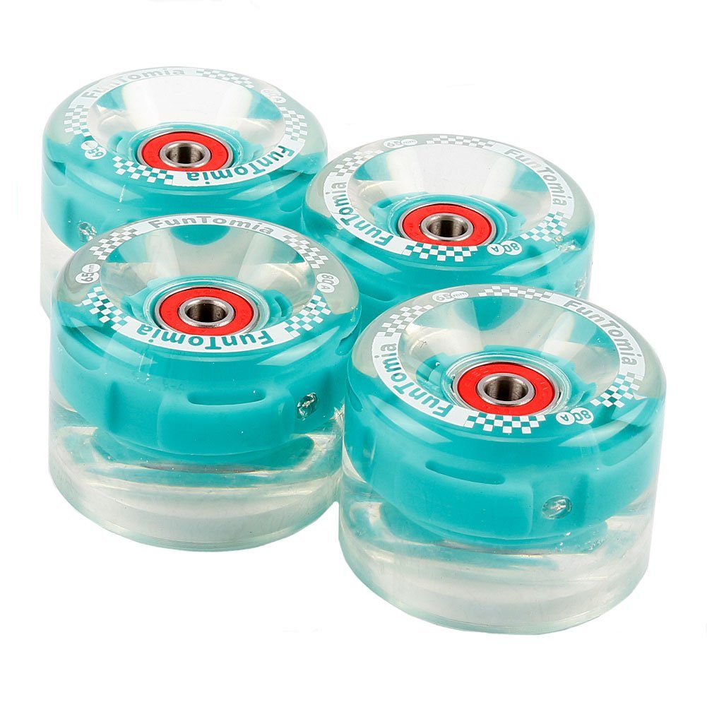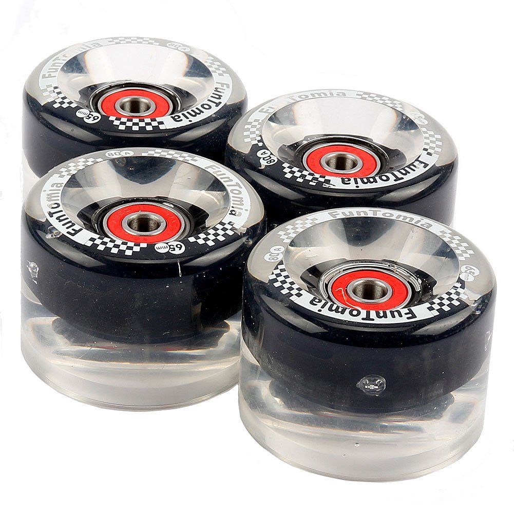 4x FunTomia Big Wheel Rollen mit und ohne LED 65x45mm mit Härtegrad 80A Die Rollen sind für Miniboards mit einer Belastbarkeit von bis zu 140kg geeignet.