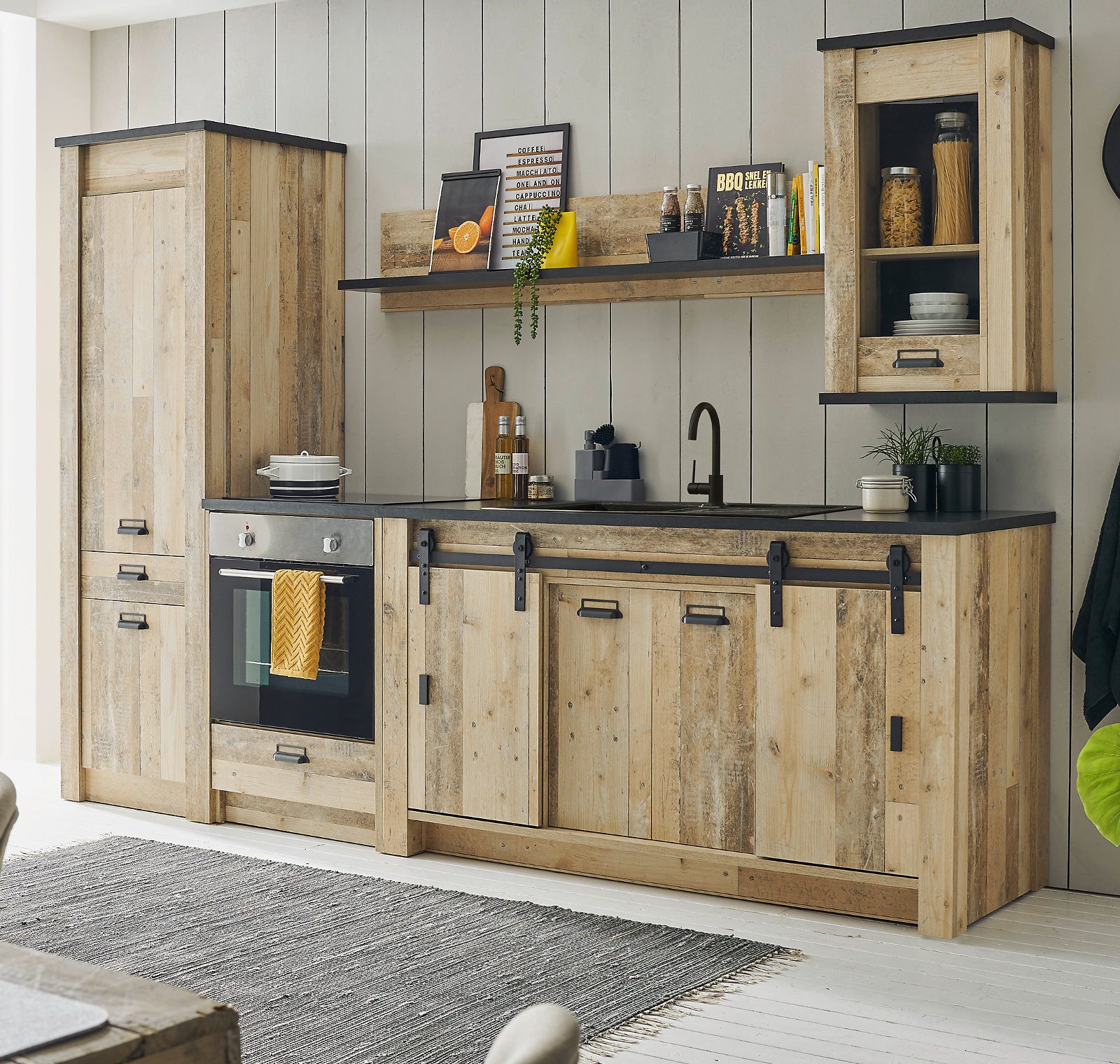 Küche "Stove", Used Wood hell Dekor und anthrazit, 5-teilig, 284 x 201 cm