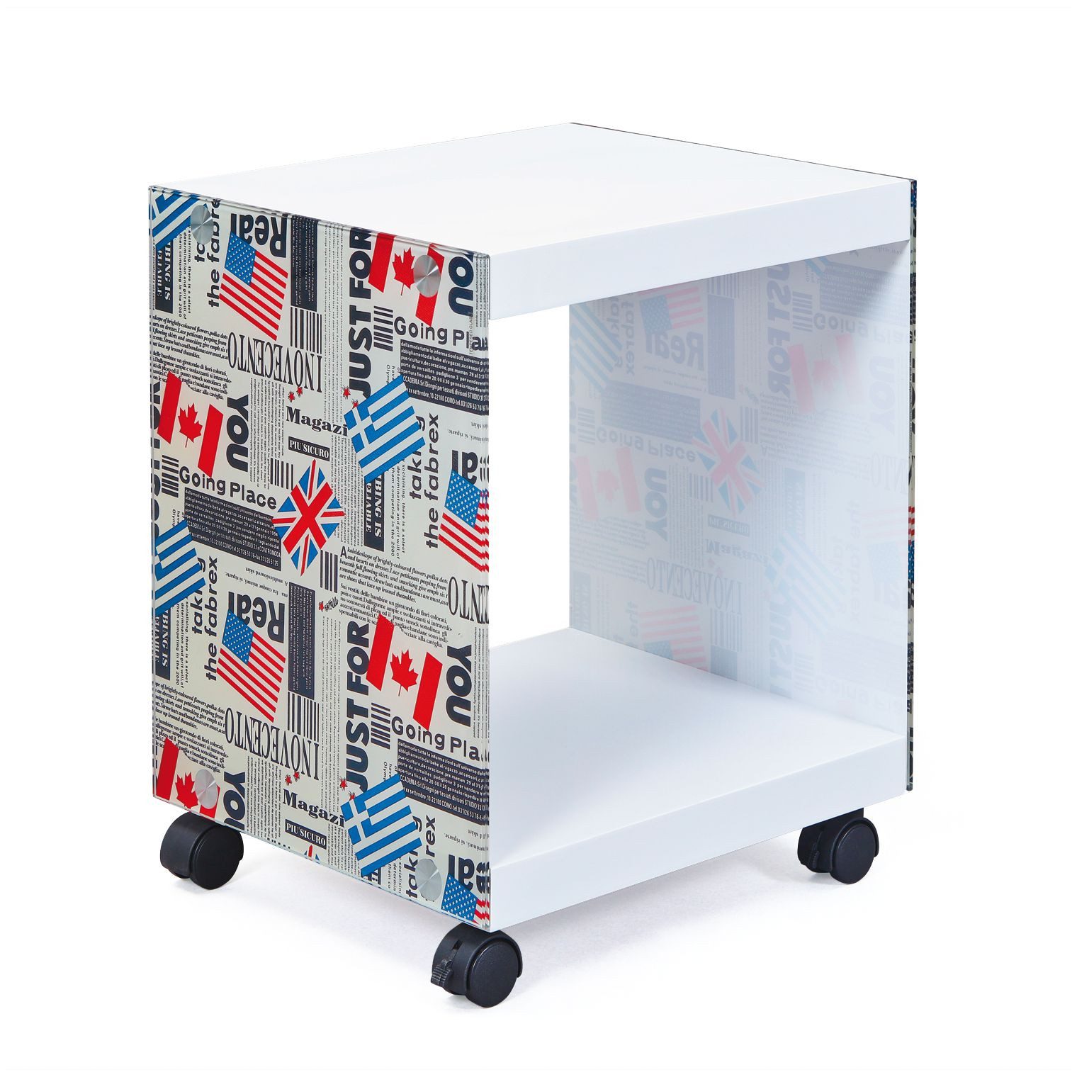 Der Beistelltisch TUVA ist ein funktionales Element, das Reiselustige begeistern wird. Mit seinem Dekor "Flaggen und Zeitungen" und seinen 4 Rollen kann dieser würfelförmige Beistelltisch leicht verschoben werden, um ihn optimal in einem Raum Ihrer Wahl einzusetzen. Eine bebilderte Schritt-für-Schritt-Montageanleitung liegt bei.