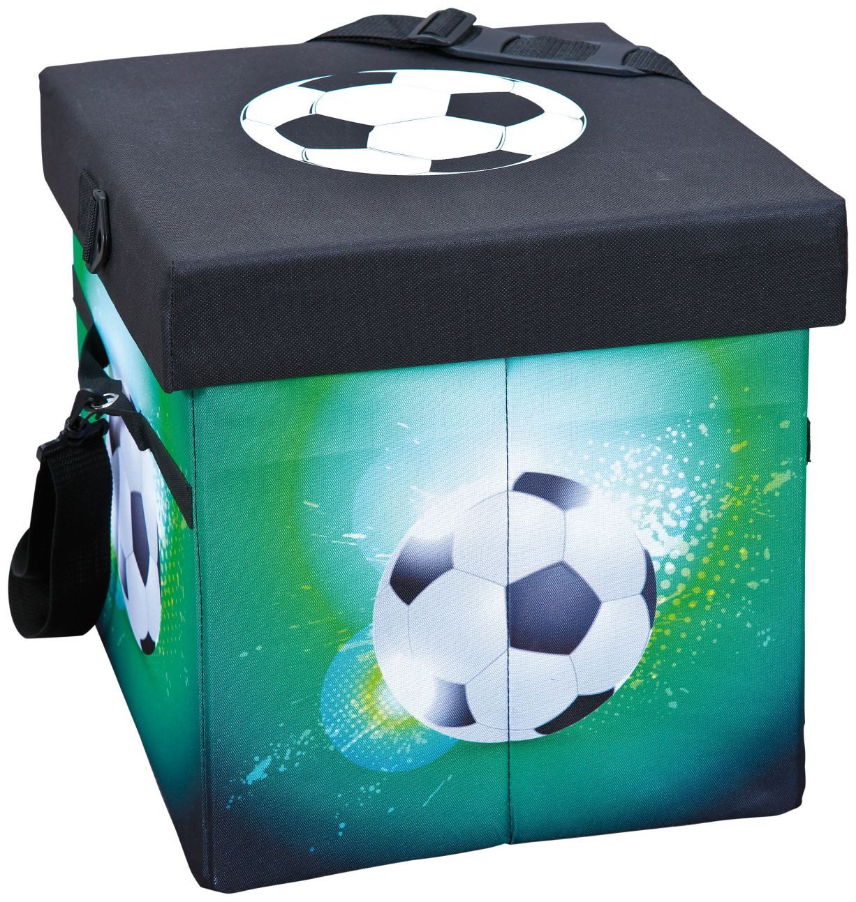 Die Hjalmar-Tasche ist die perfekte Lösung für Outdoor-Ausflüge! Mit ihrem grünen Dekor im Football-Stil kann sie mithilfe des abnehmbaren Schultergurts überall hin mitgenommen werden. Dank der praktischen Kühlfunktion können Getränke kühl gehalten und die Tasche auch als Hocker verwendet werden. Eine echte 2in1-Tasche!