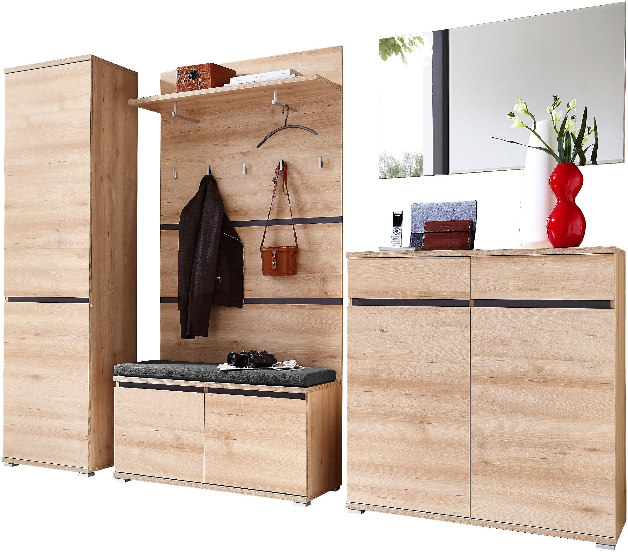 • Praktische und durchdachte Funktionen: Das Set beinhaltet eine ausziehbare Kleiderstange und einen Spiegel mit Facettenschliff, die Ihre Garderobe perfekt ergänzen und die Nutzung