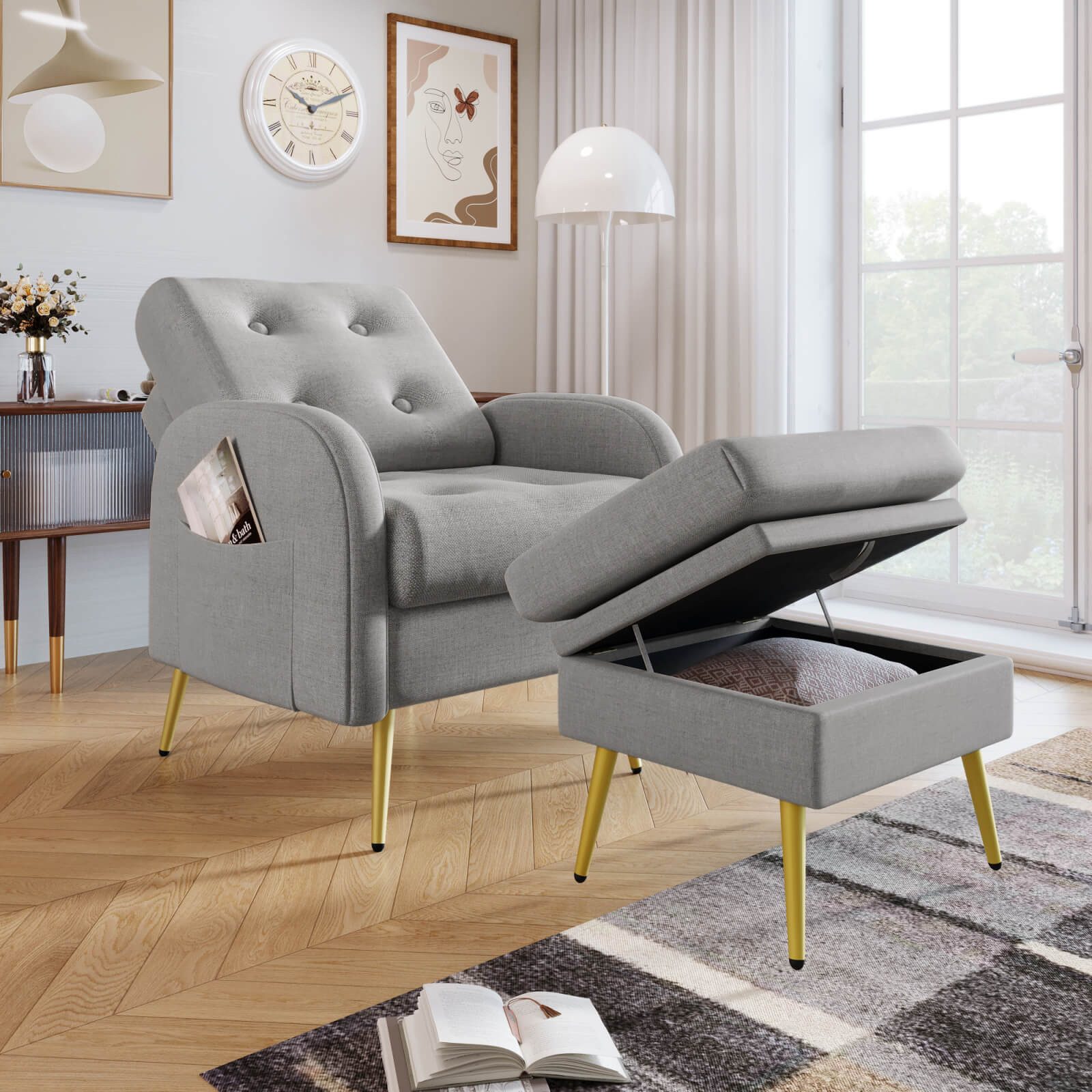 1. Ultimativer Komfort: Unsere Kombination aus Stuhl und Fußstütze bietet Ihnen völlige Entspannung mit bequemen, abgerundeten Armlehnen und Fußstütze. Perfekt für gemütliche Stunden und Ruhe zu Hause.