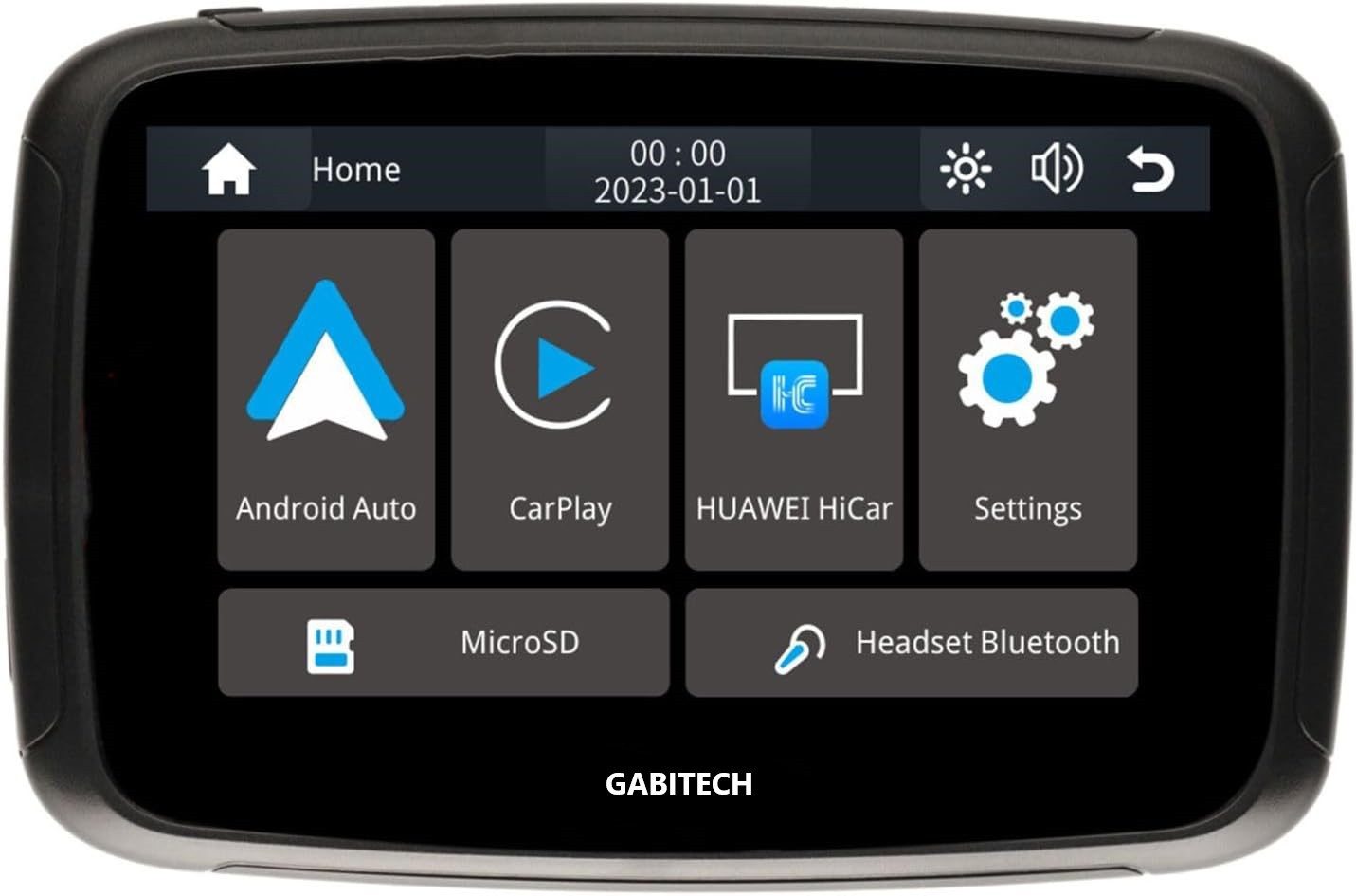 · Gabitech Motorrad CarPlay Navigation ermöglicht es Ihnen, sicher und einfach mobil zu sein – und bleibt dabei Ihr ständiger Begleiter. Mit unserem wasserdichten 5"-Display, Drahtlos Apple Carplay und Android Auto Steuerung wird das Navigieren auf zwei Rädern zu einem ganz neuen Erlebnis.