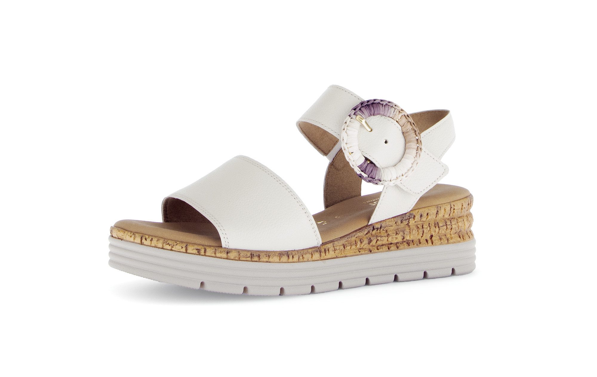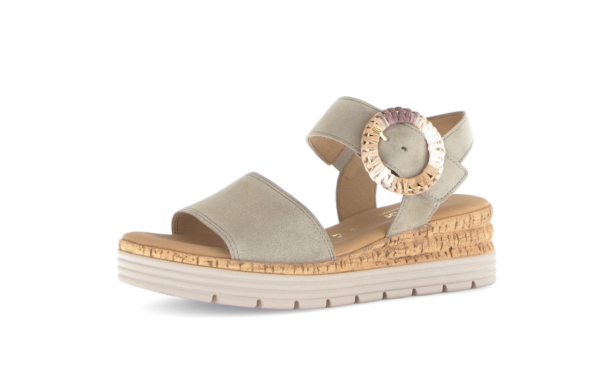 Mit den Keilsandaletten der Marke Gabor bist du bereit für einen Spaziergang an der Strandpromenade. Durch der Klettverschluss kannst du den Schuh individuell in der Weite anpassen und ihn schnell an- und ausziehen.