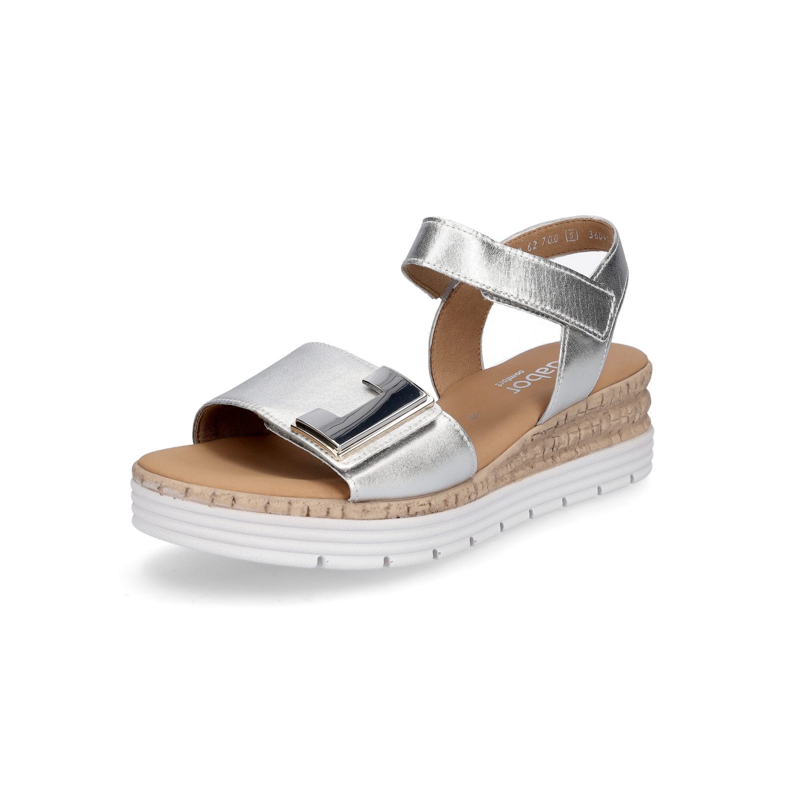 Mit den Keilsandaletten der Marke Gabor ist dein Urlaubs-Outfit komplett. Damit kannst du stilvoll und bequem die warmen Sommerabende genießen. Mit den Klettverschlüssen kannst du den Schuh individuell in der Weite anpassen und ihn schnell an- und ausziehen.